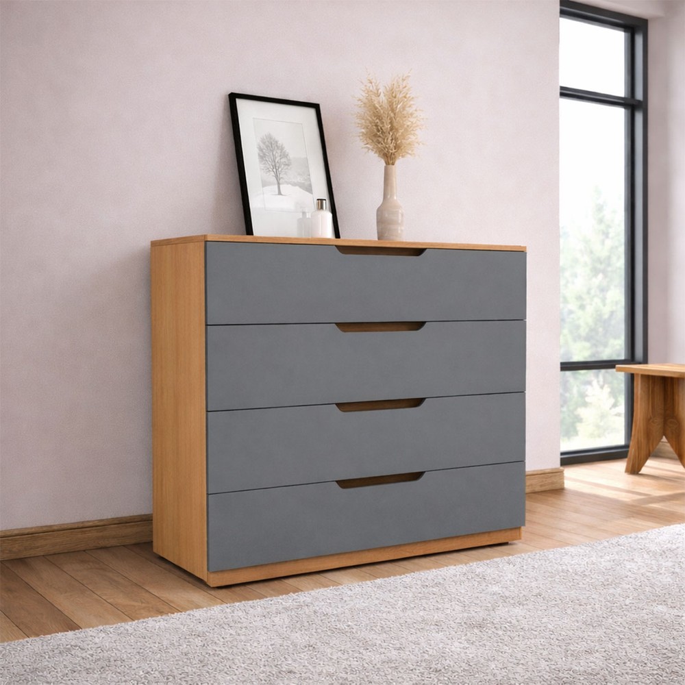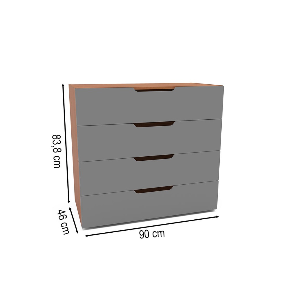 Cômoda Madri 4 Gavetas Cinza/Freijó - Politorno