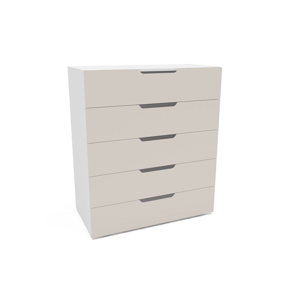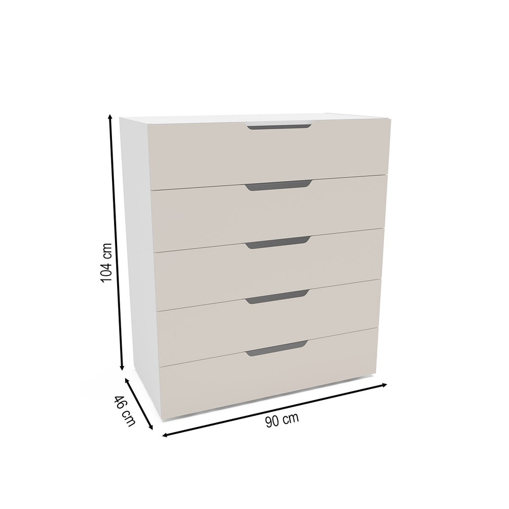 O(a) Cômoda Madri 5 Gavetas Creme/Branco - Politorno é produzido em MDP na escala de brilho Semi-Fosco, e possui um grau de dificuldade de montagem: Médio.
