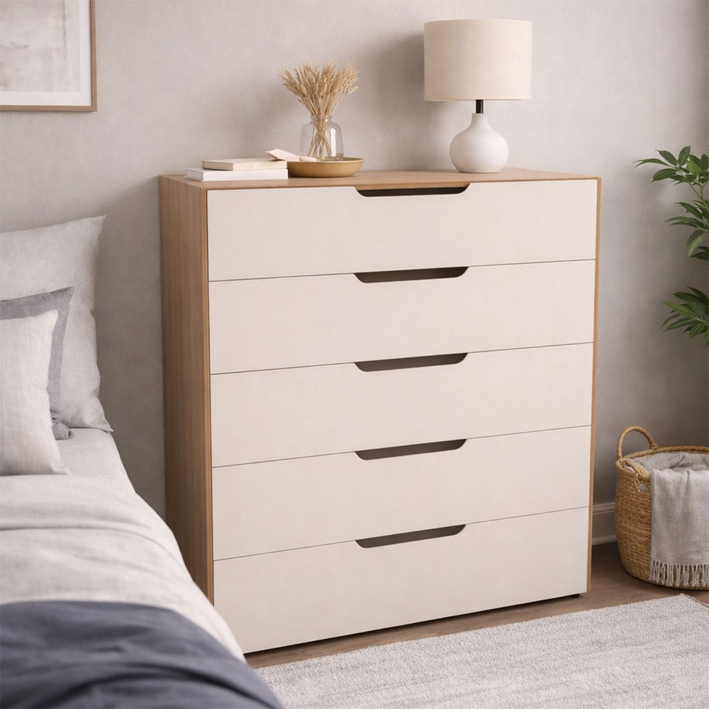 Cômoda Madri 5 Gavetas Creme/Freijó - Politorno