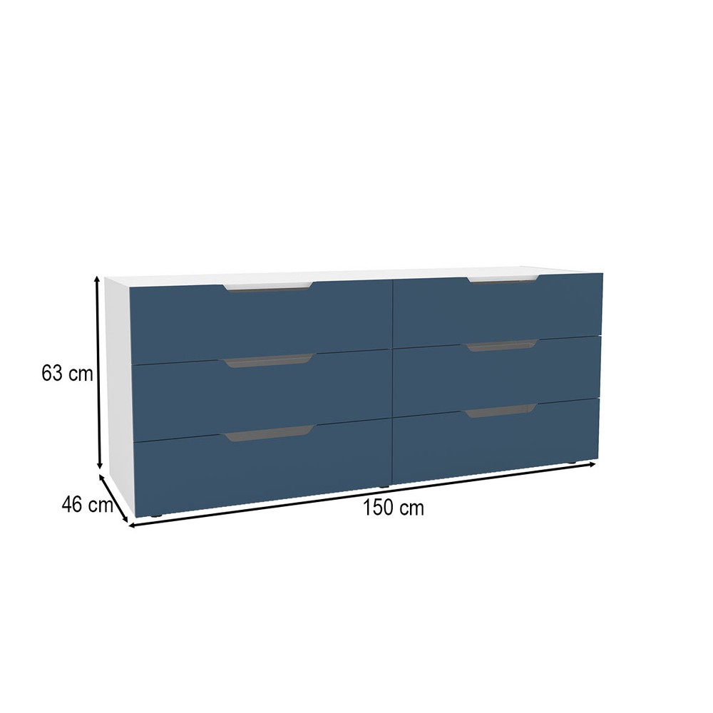 Cômoda Madri 6 Gavetas Azul/Branco - Politorno