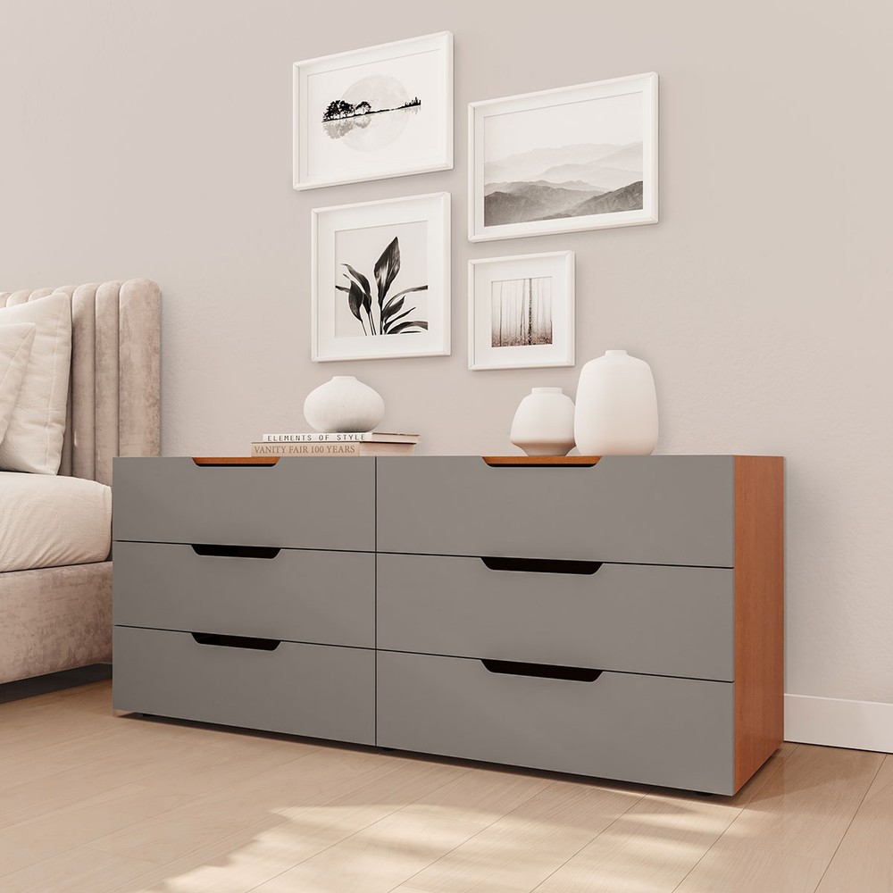 Cômoda Madri 6 Gavetas Cinza/Freijó - Politorno