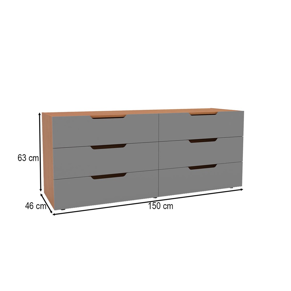 O(a) Cômoda Madri 6 Gavetas Cinza/Freijó - Politorno é produzido em MDP na escala de brilho Semi-Fosco, e possui um grau de dificuldade de montagem: Médio.