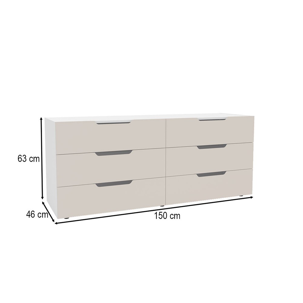 Cômoda Madri 6 Gavetas Creme/Branco - Politorno