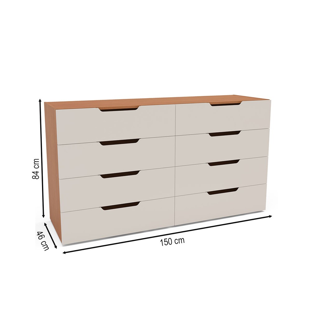 O(a) Cômoda Madri 8 Gavetas Creme/Freijó - Politorno é produzido em MDP na escala de brilho Semi-Fosco, e possui um grau de dificuldade de montagem: Médio.