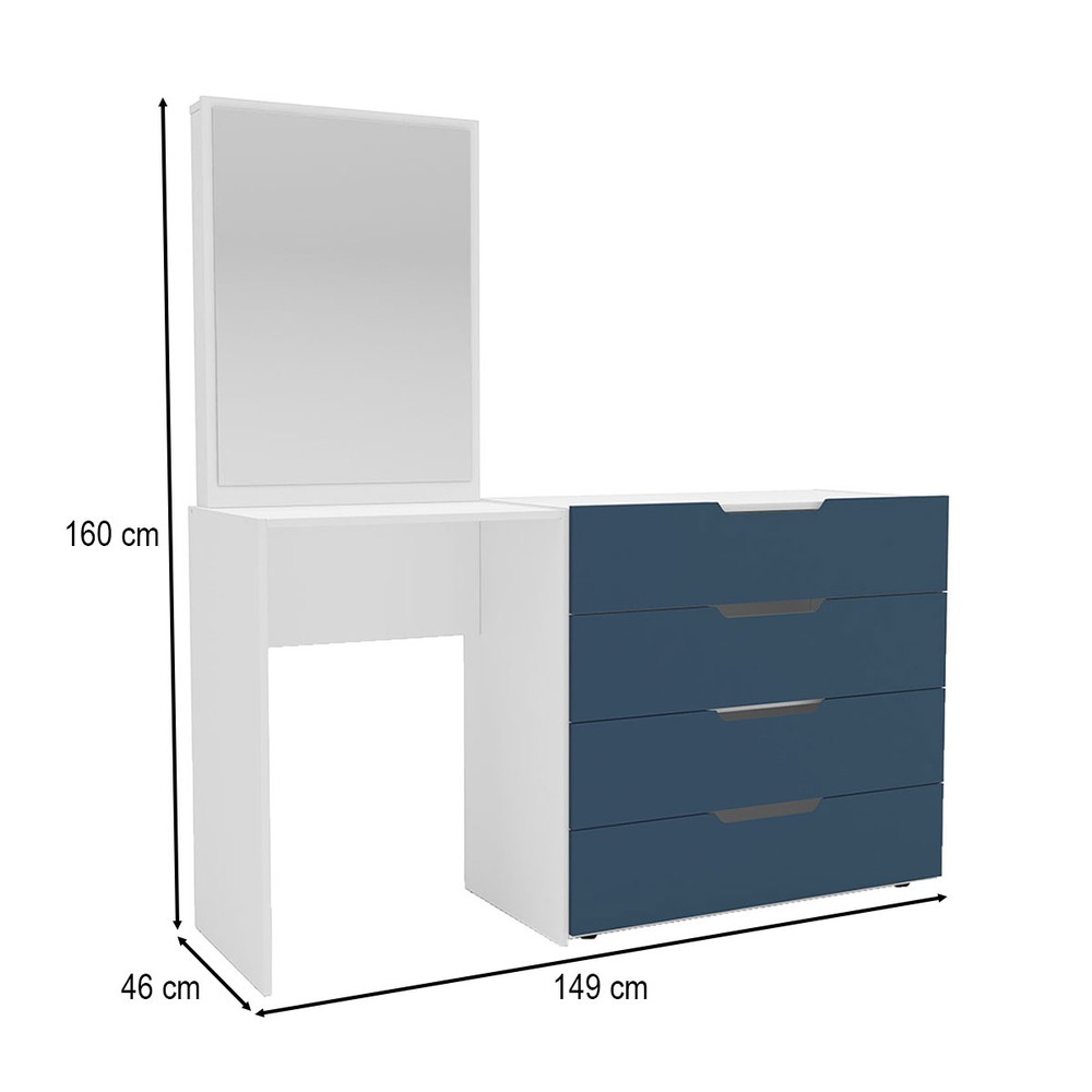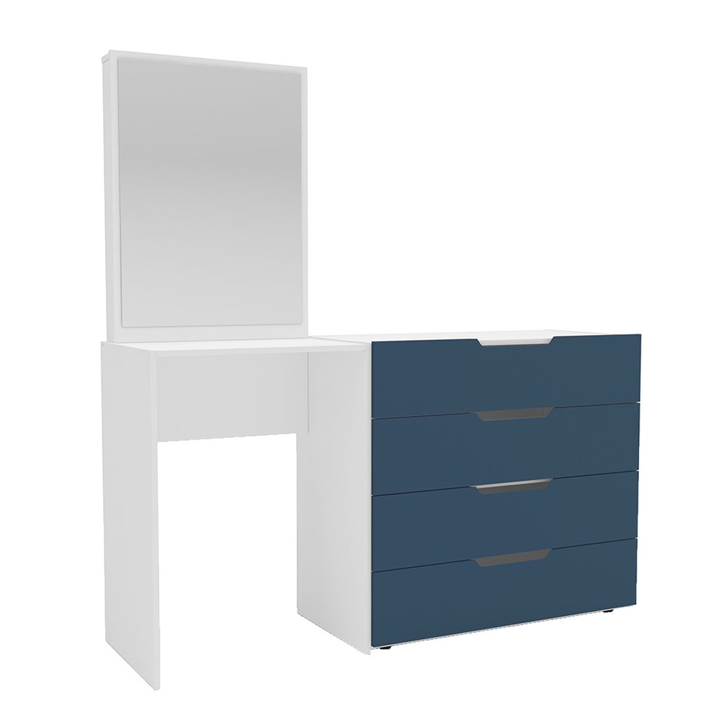Cômoda Madrid 4 Gavetas com Espelho Azul/Branco - Politorno