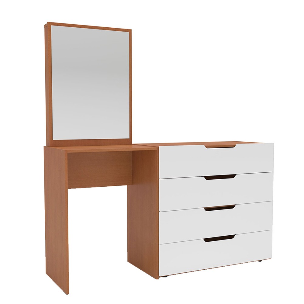 Cômoda Madrid 4 Gavetas com Espelho Branco/Freijó - Politorno