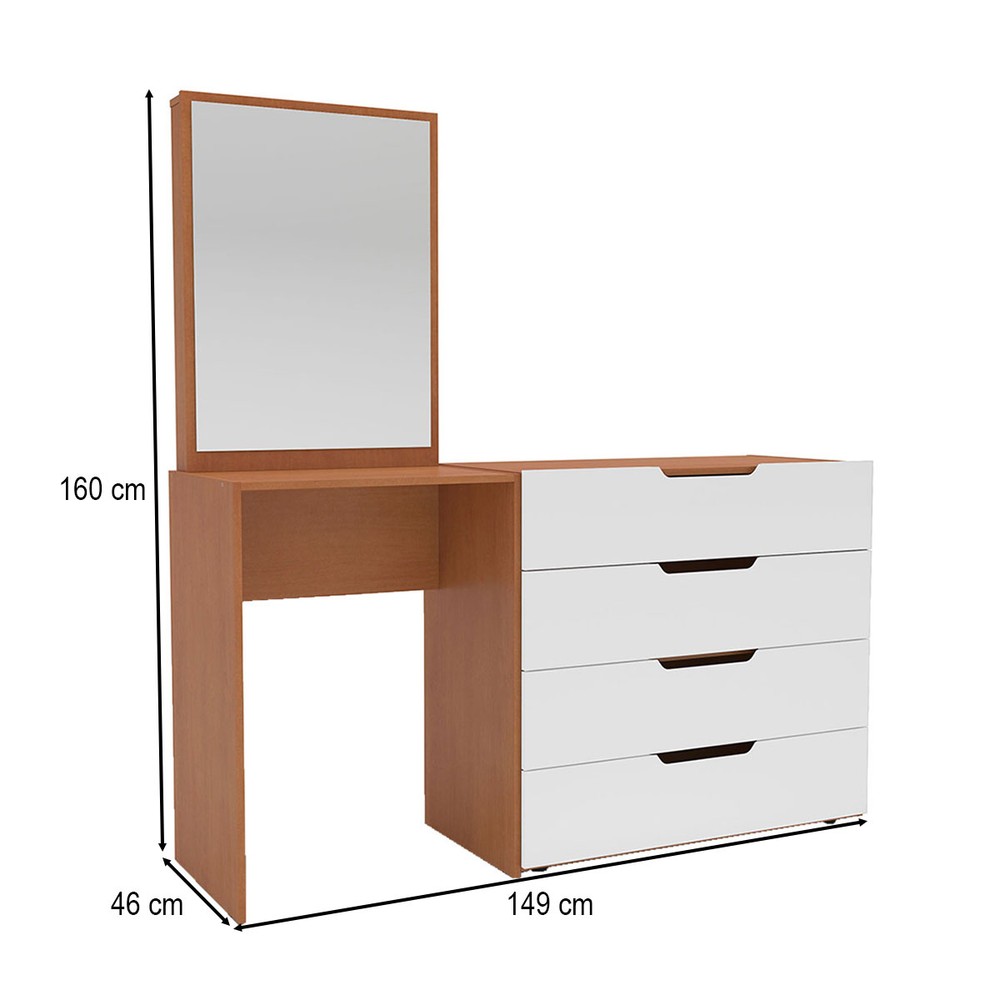 O(a) Cômoda Madrid 4 Gavetas com Espelho Branco/Freijó - Politorno é produzido em MDP na escala de brilho Semi-Fosco, e possui um grau de dificuldade de montagem: Médio.