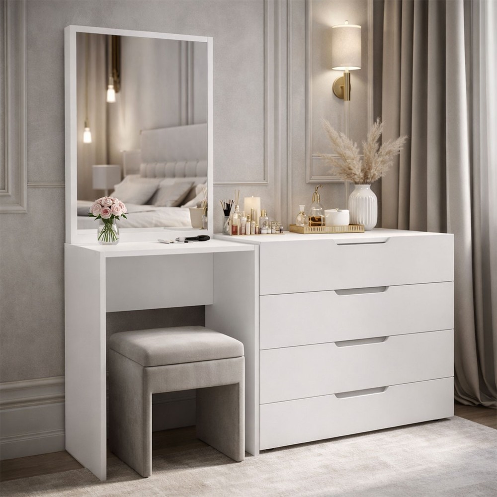 Cômoda Madrid 4 Gavetas com Espelho Branco - Politorno