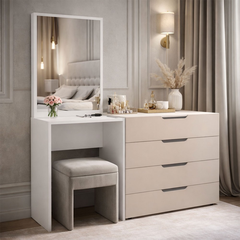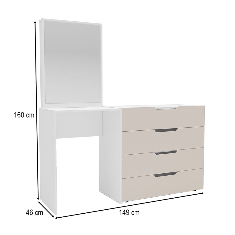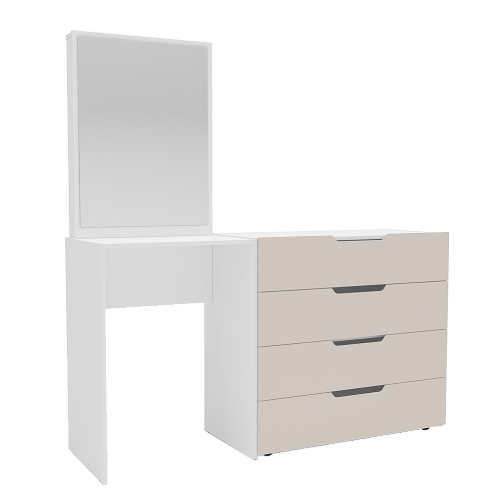 Cômoda Madrid 4 Gavetas com Espelho Creme/Branco - Politorno
