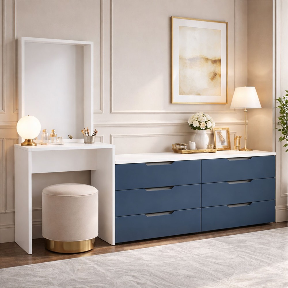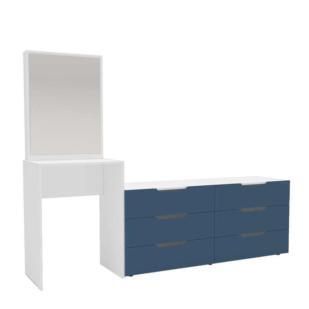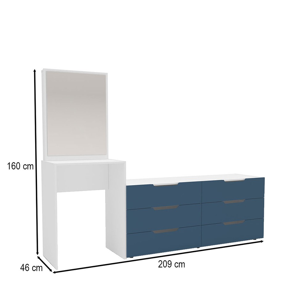 Cômoda Madrid 6 Gavetas com Espelho Azul/Branco - Politorno