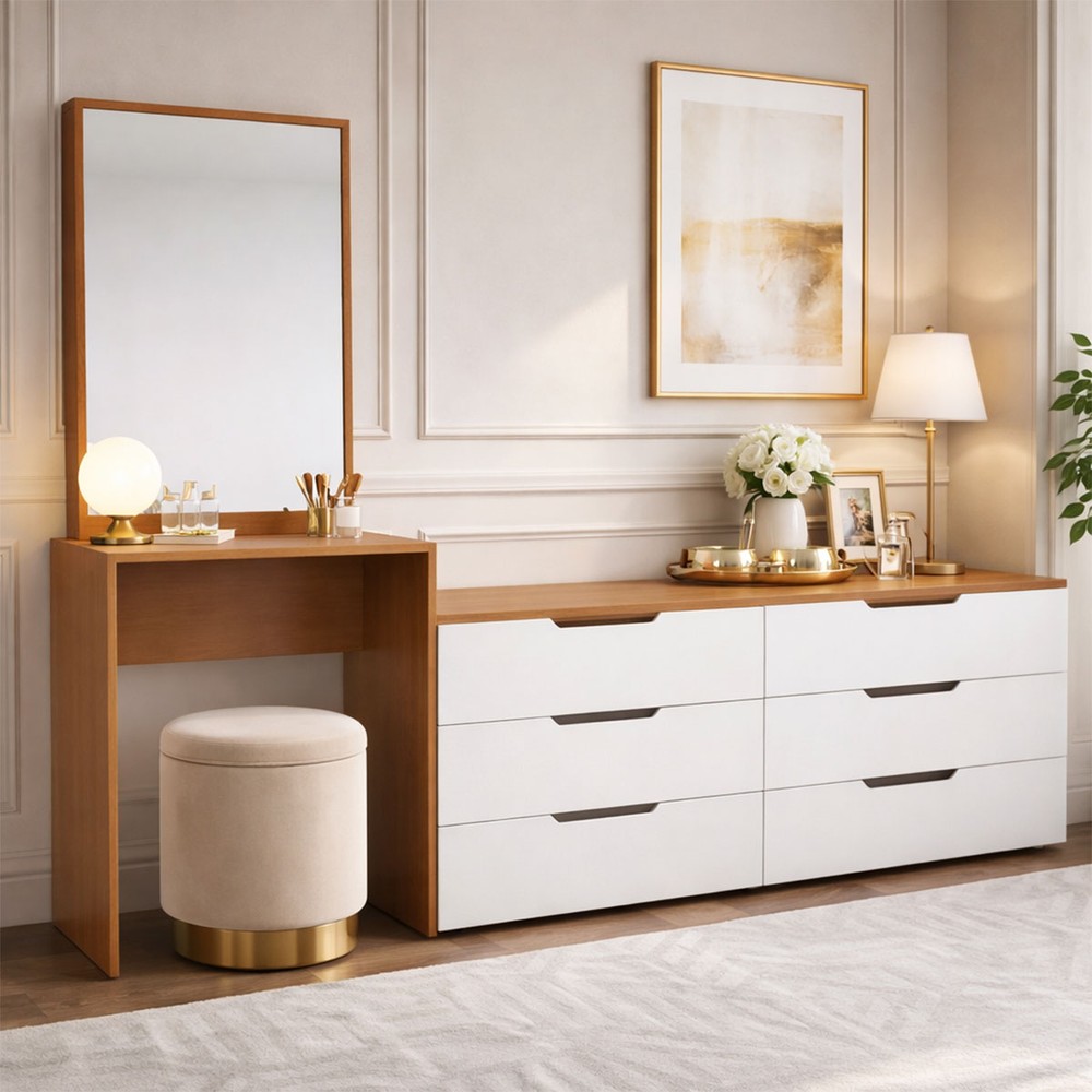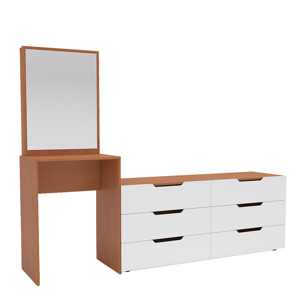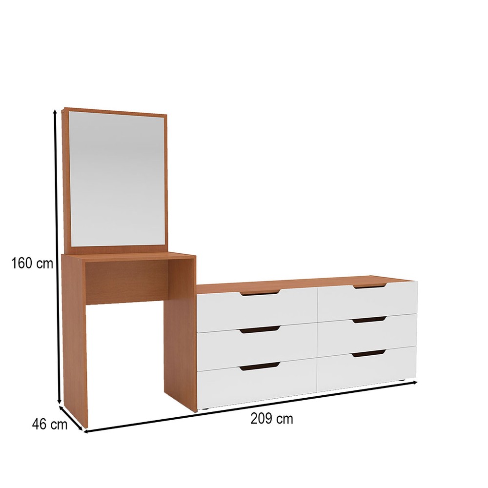 Cômoda Madrid 6 Gavetas com Espelho Branco/Freijó - Politorno