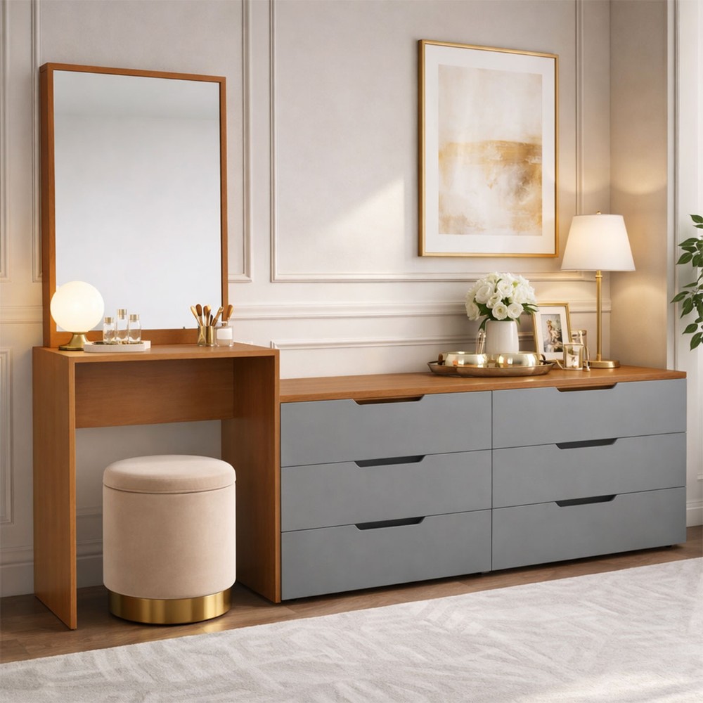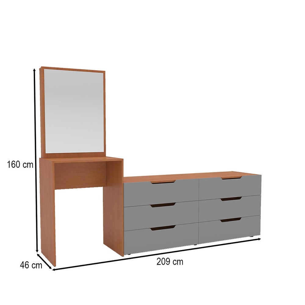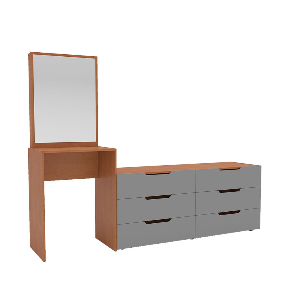 Cômoda Madrid 6 Gavetas com Espelho Cinza/Freijó - Politorno