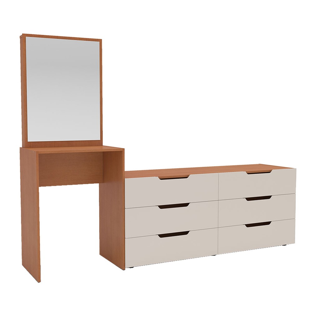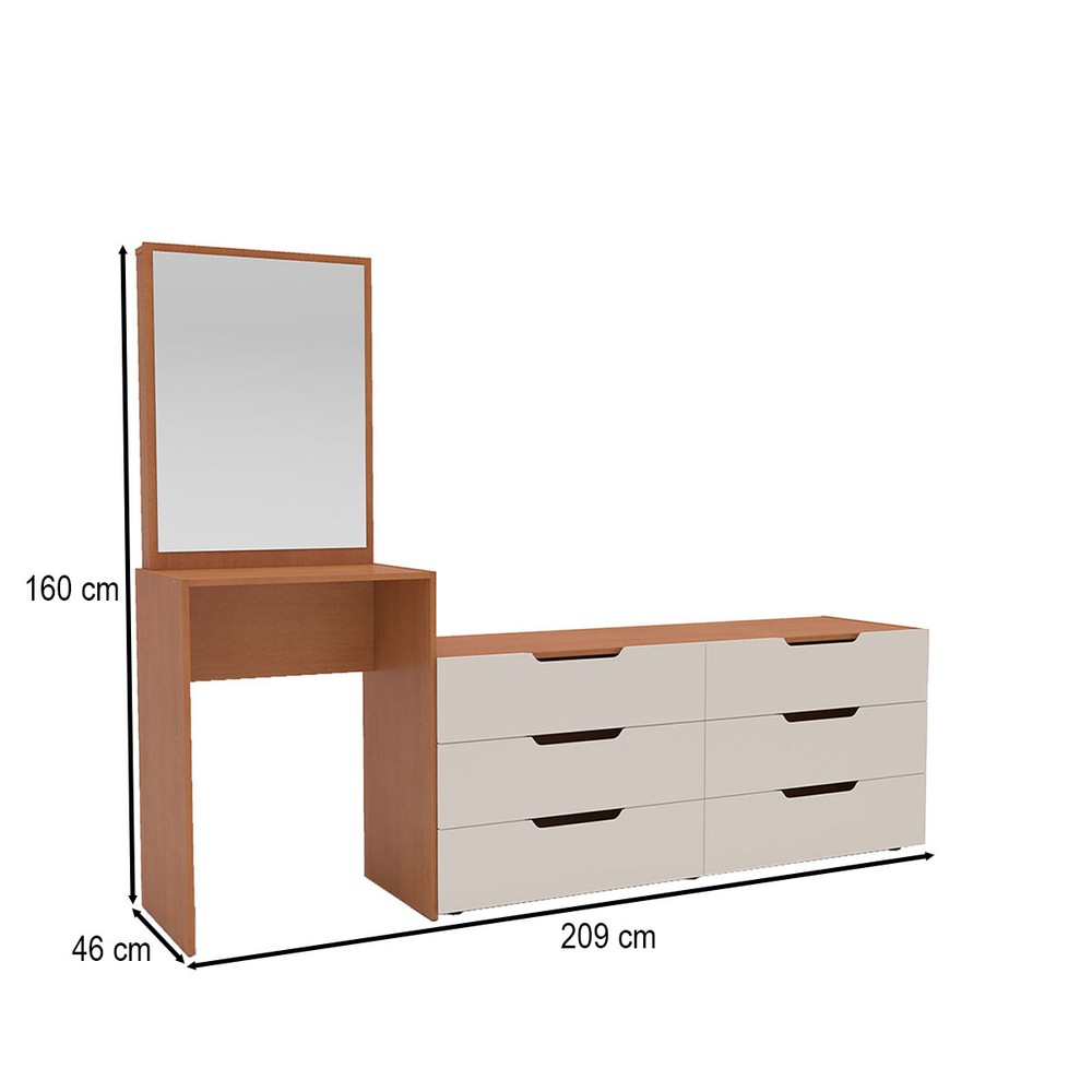 Cômoda Madrid 6 Gavetas com Espelho Creme/Freijó - Politorno