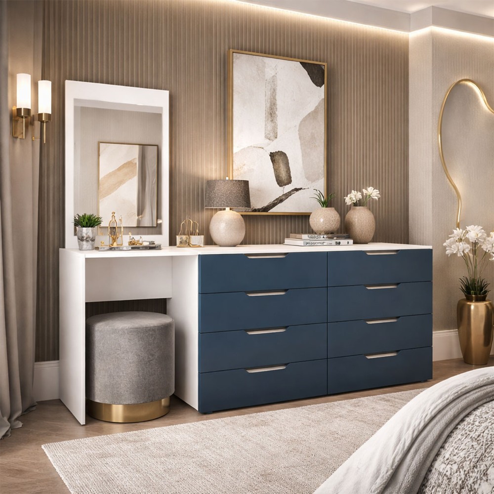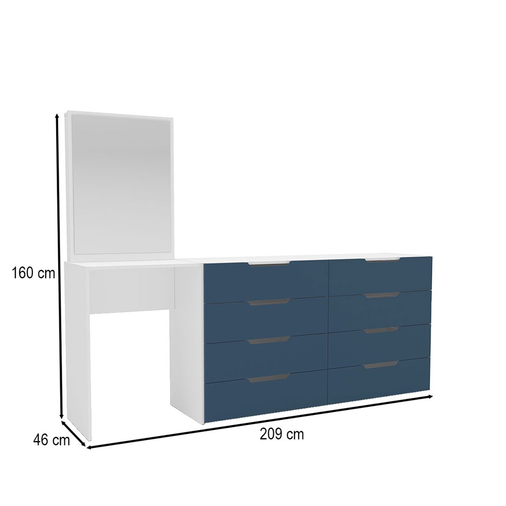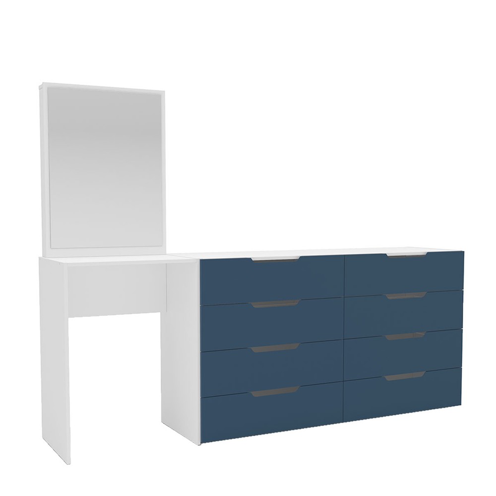 Cômoda Madrid 8 Gavetas com Espelho Azul/Branco - Politorno