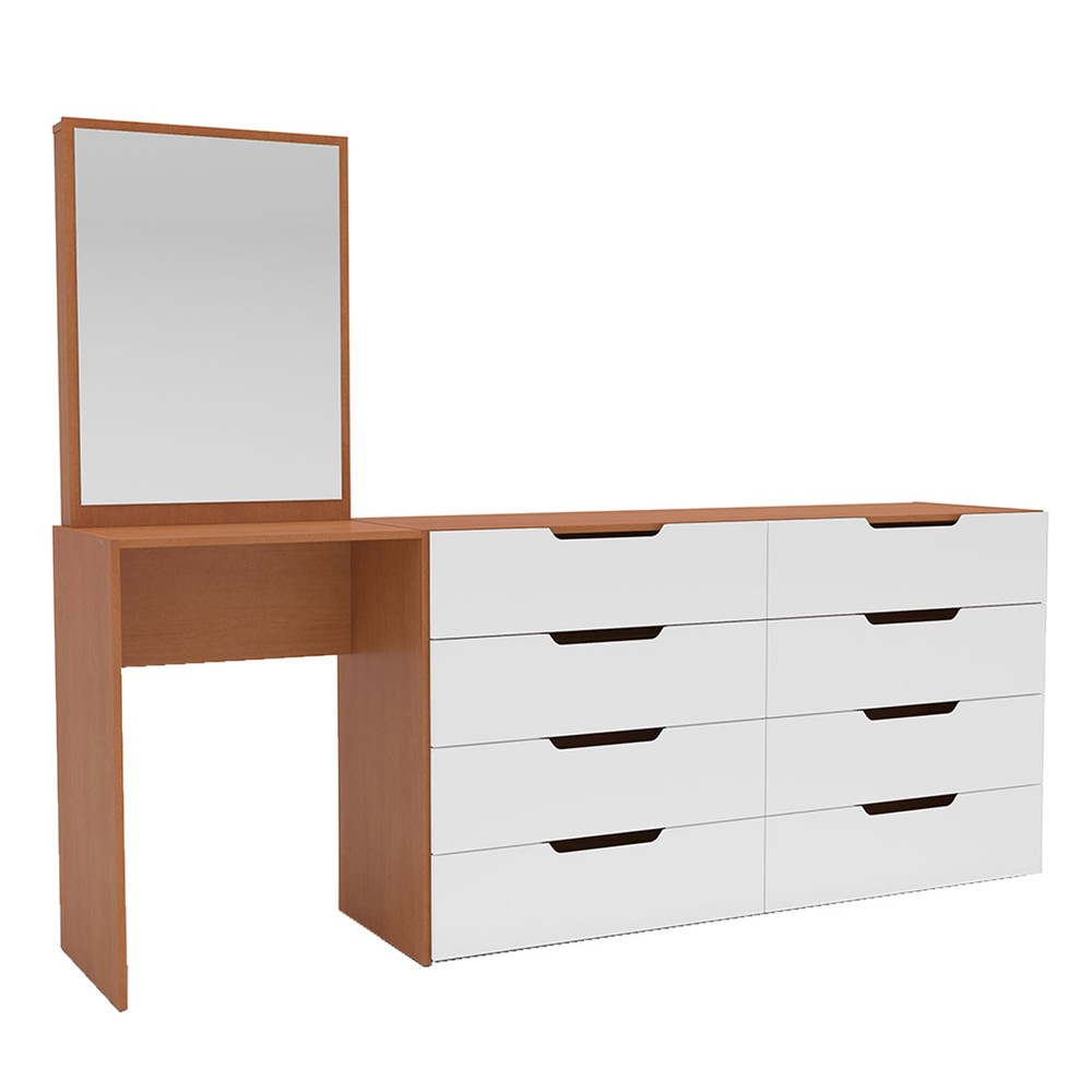 Cômoda Madrid 8 Gavetas com Espelho Branco/Freijó - Politorno