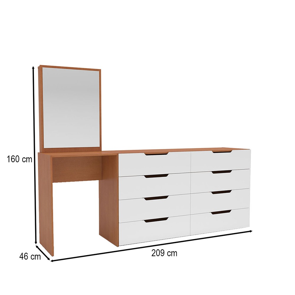 O(a) Cômoda Madrid 8 Gavetas com Espelho Branco/Freijó - Politorno é produzido em MDP na escala de brilho Semi-Fosco, e possui um grau de dificuldade de montagem: Médio.
