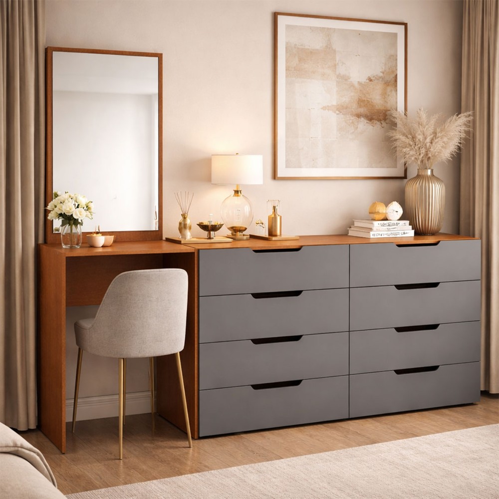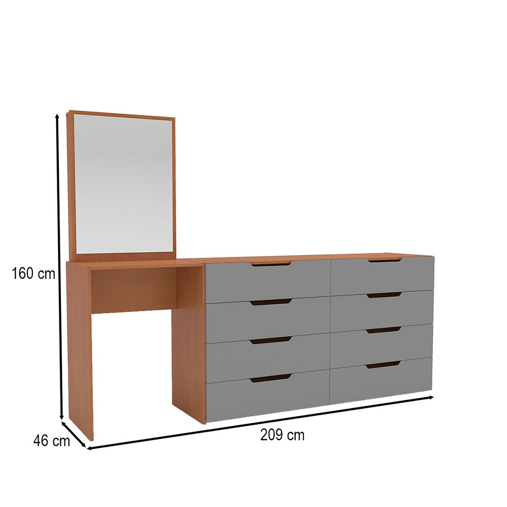Cômoda Madrid 8 Gavetas com Espelho Cinza/Freijó - Politorno
