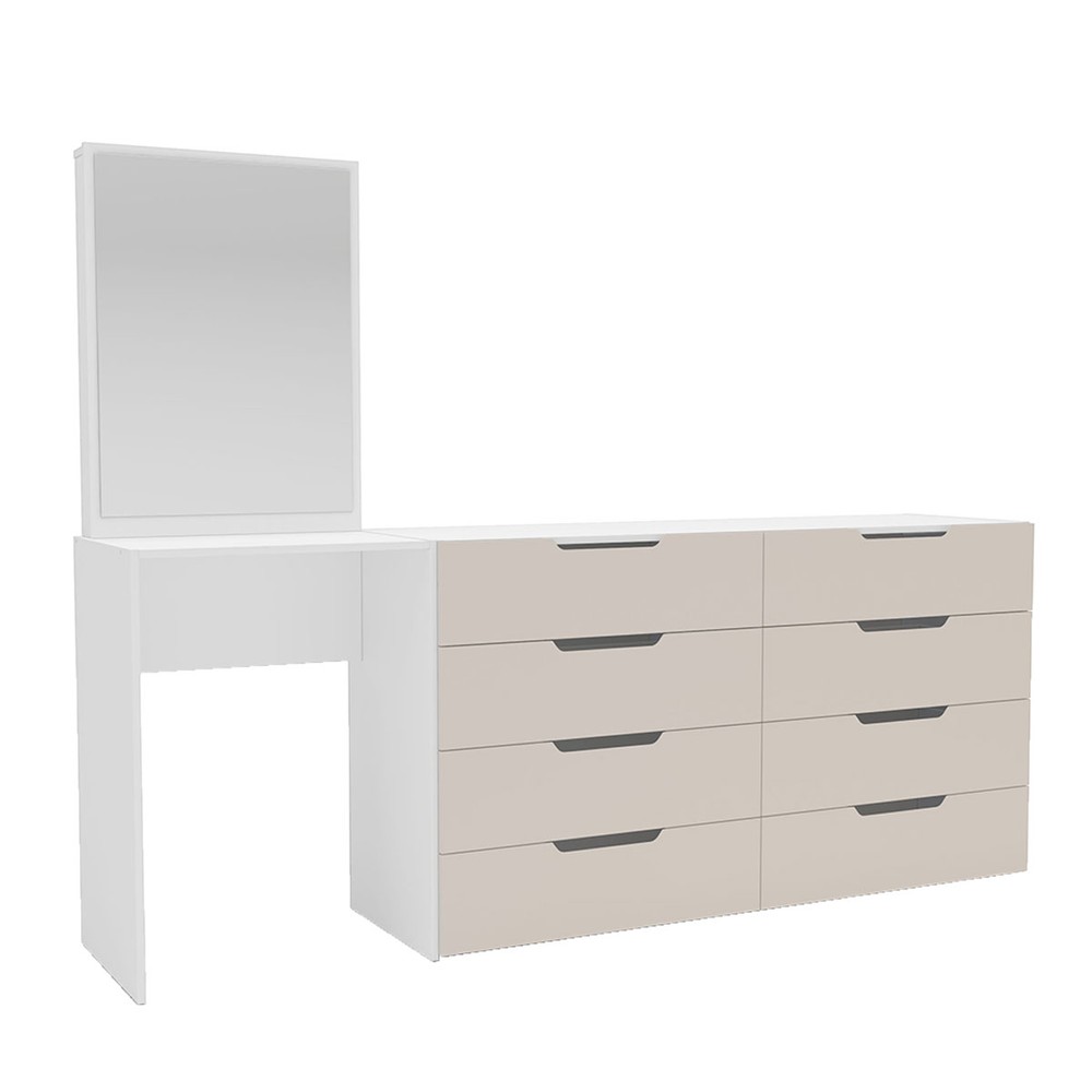 Cômoda Madrid 8 Gavetas com Espelho Creme/Branco - Politorno