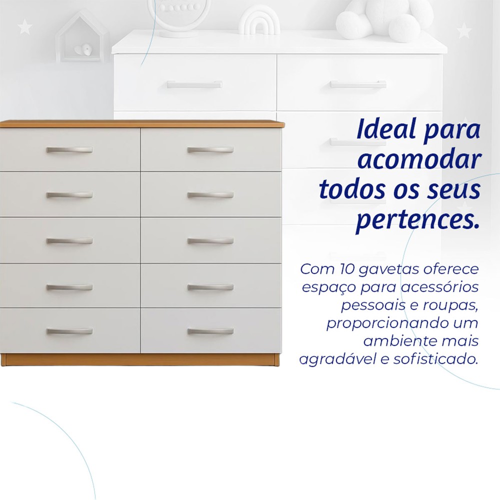 Cômoda Marbela 10 Gavetas Demolição/Branco - Evidencia Móveis