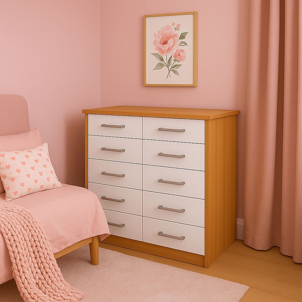 O(a) Cômoda Marbela 10 Gavetas Demolição/Branco - Evidencia Móveis é produzido em MDP na escala de brilho Fosco, e possui um grau de dificuldade de montagem: Médio.