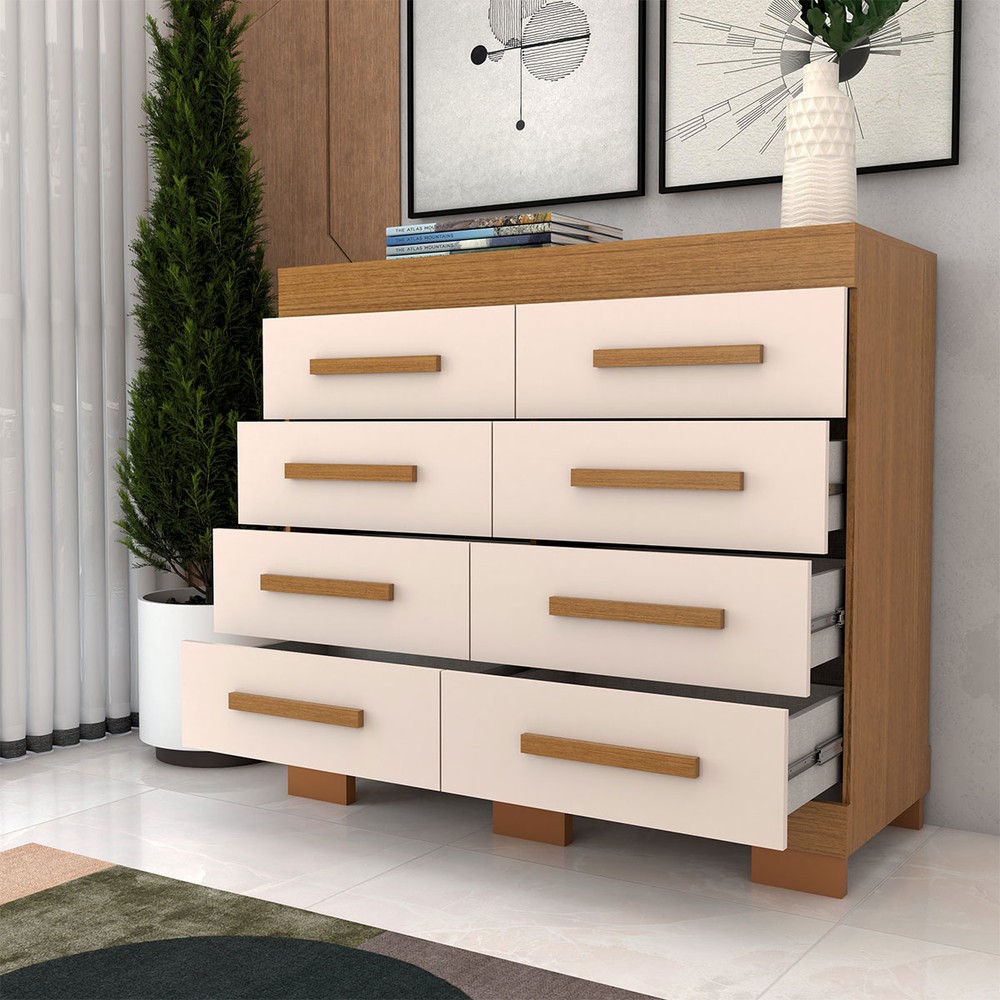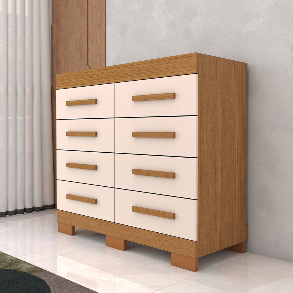 O(a) Cômoda Milano 8 Gavetas 100% Mdf Cinamomo/Off White - Panorama Móveis é produzido em 100% MDF na escala de brilho Brilhante e Semi-Brilho, e possui um grau de dificuldade de montagem: Médio.