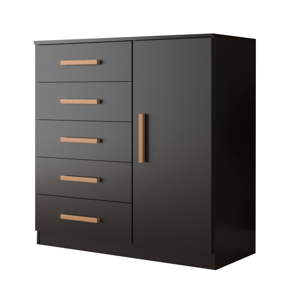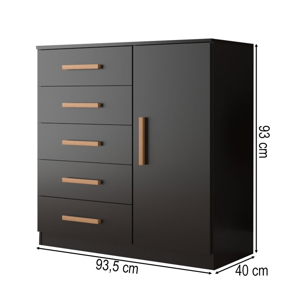 Cômoda New Monaco 1 Porta 5 Gavetas Black - Evidencia Móveis
