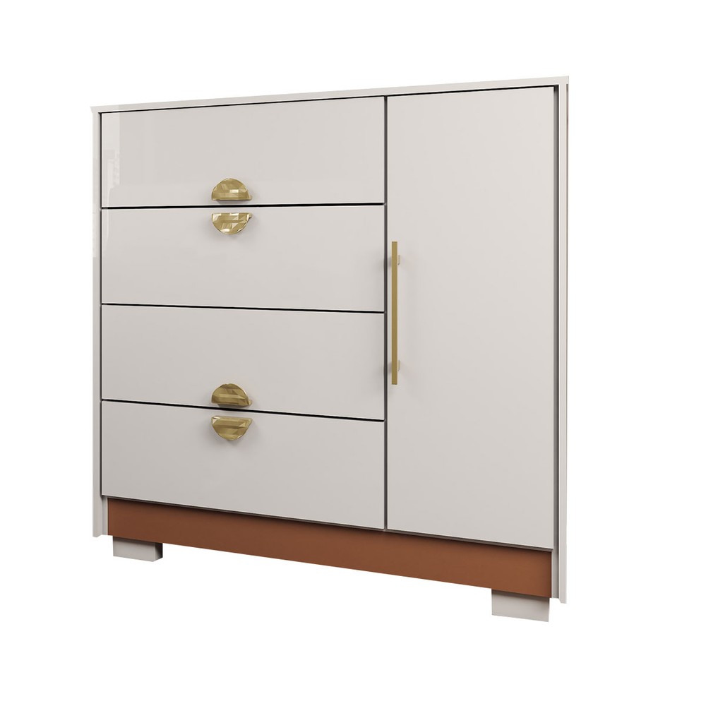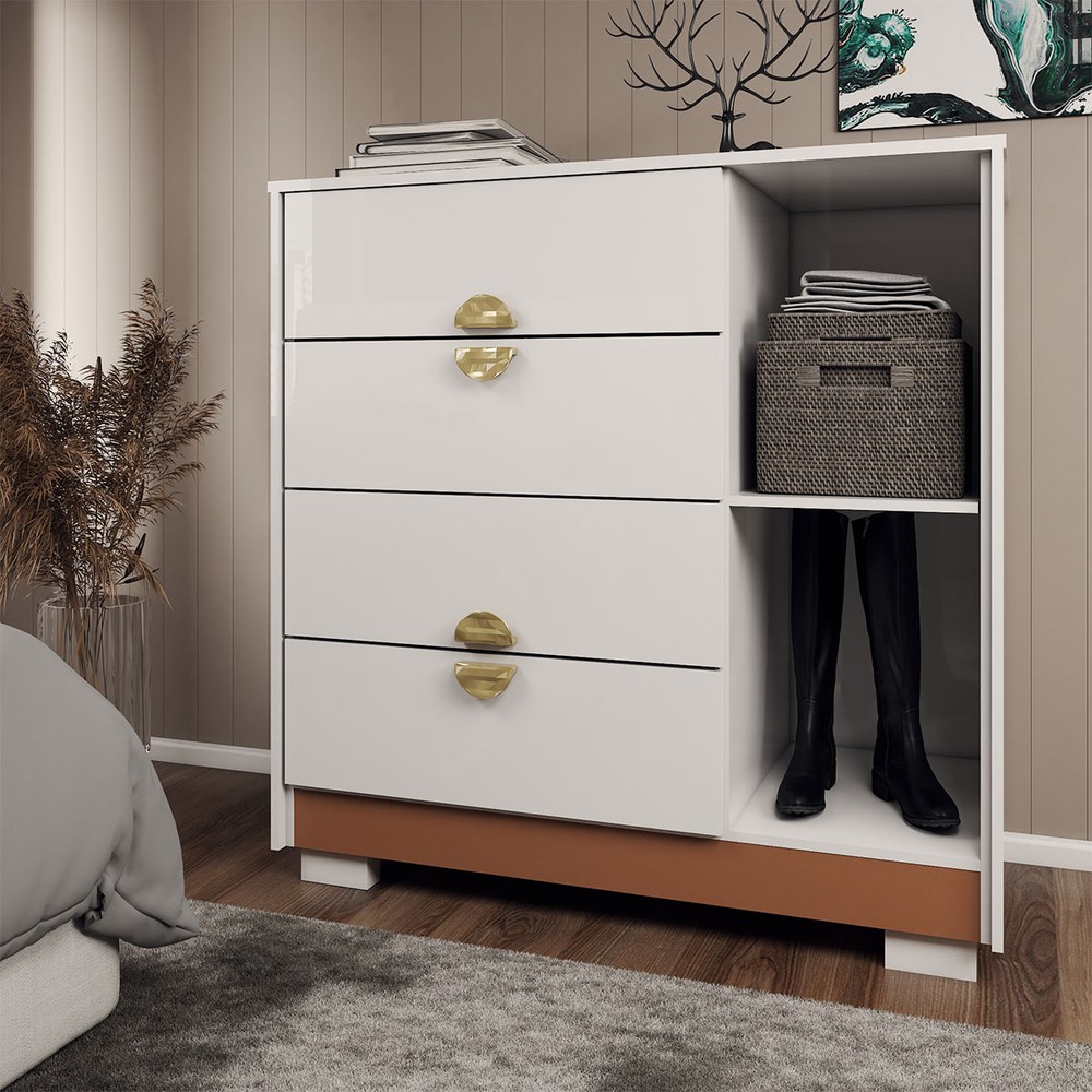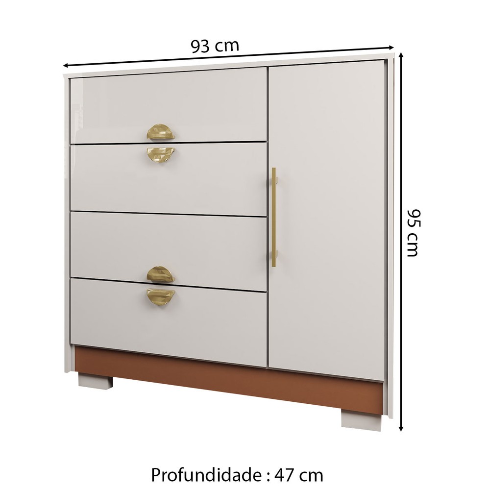 Cômoda Sapateira Búzios 1 Porta 4 Gavetas Branco/Camarim - Panorama Móveis