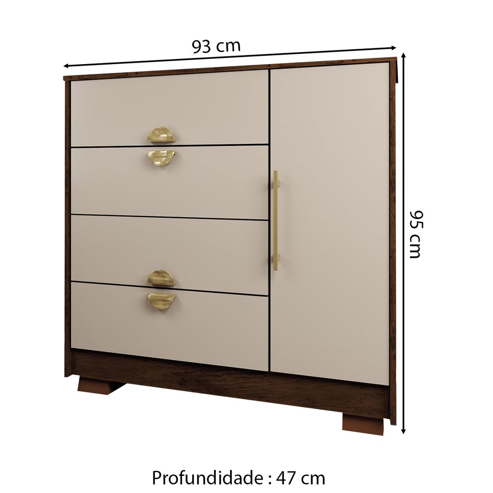 Cômoda Sapateira Búzios 1 Porta 4 Gavetas Imbuia/Fendi - Panorama Móveis