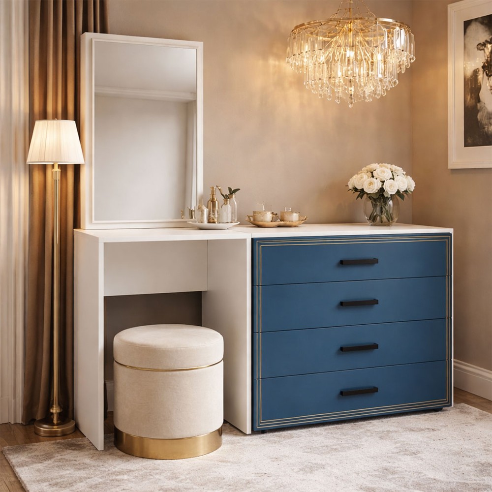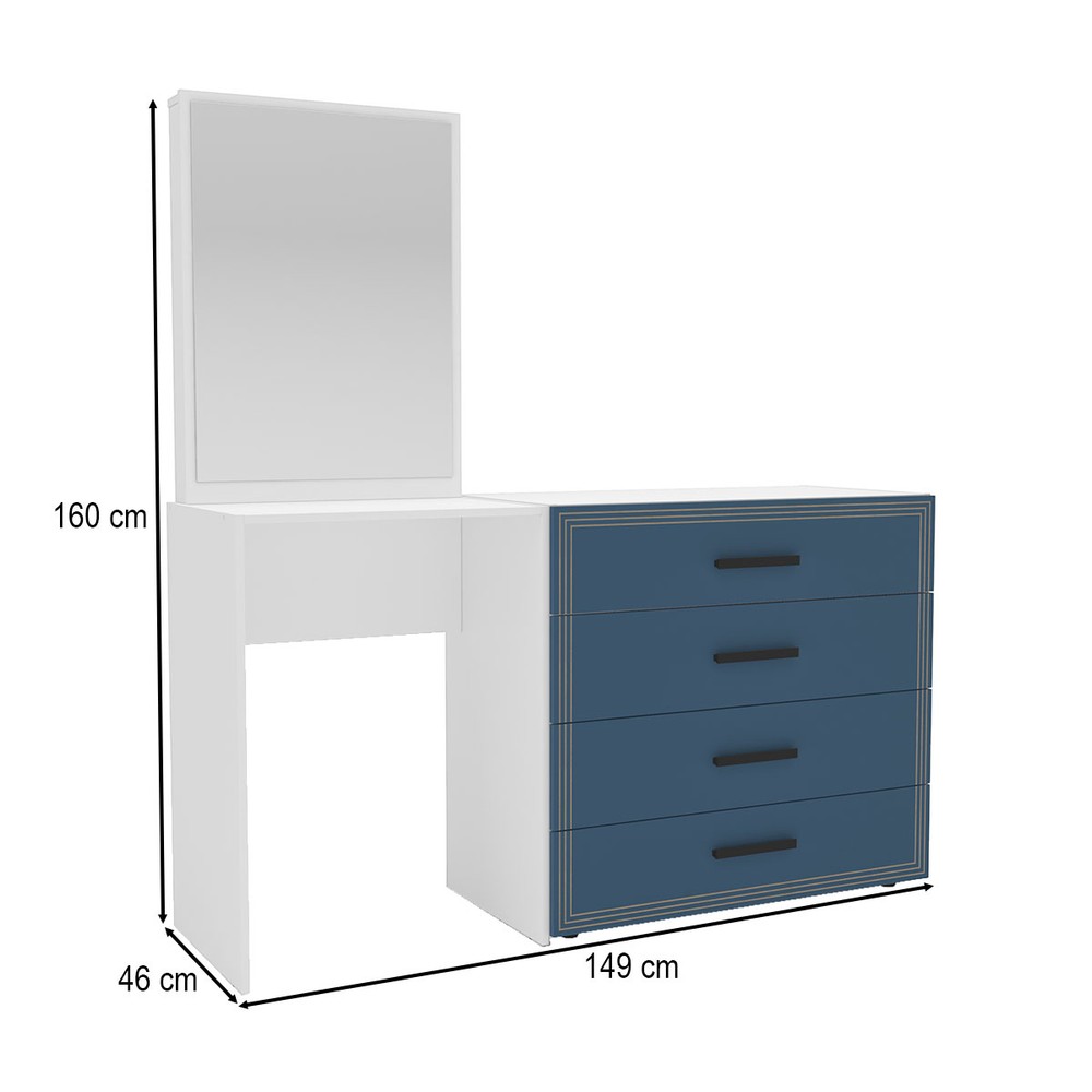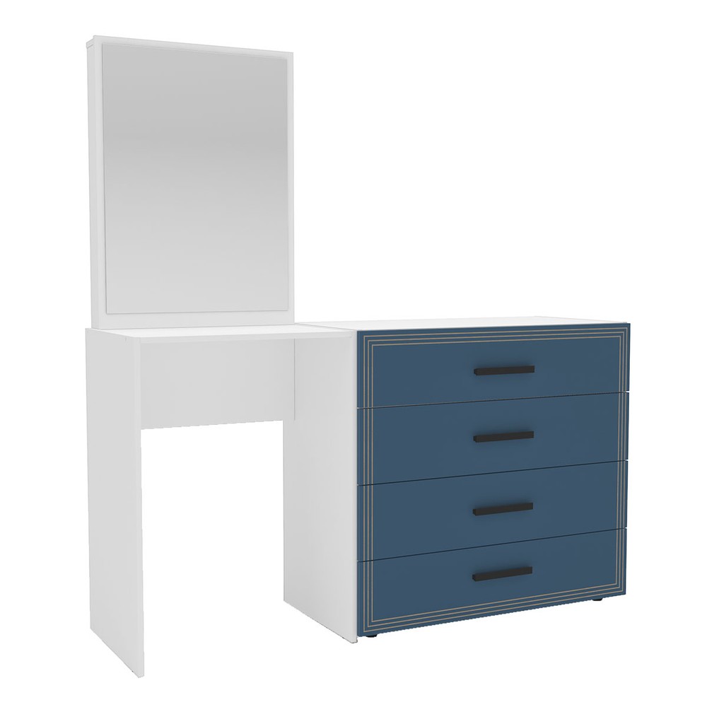 Cômoda Valência 4 Gavetas com Espelho Azul/Branco - Politorno