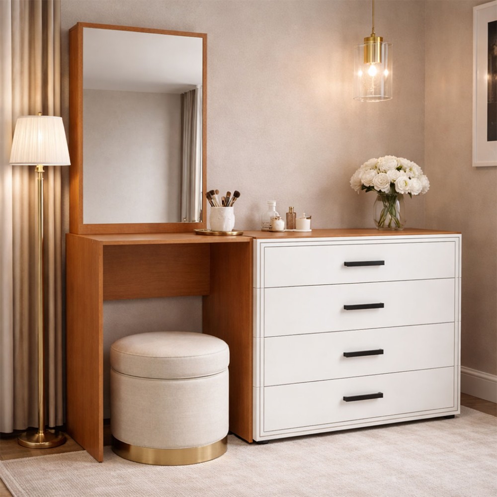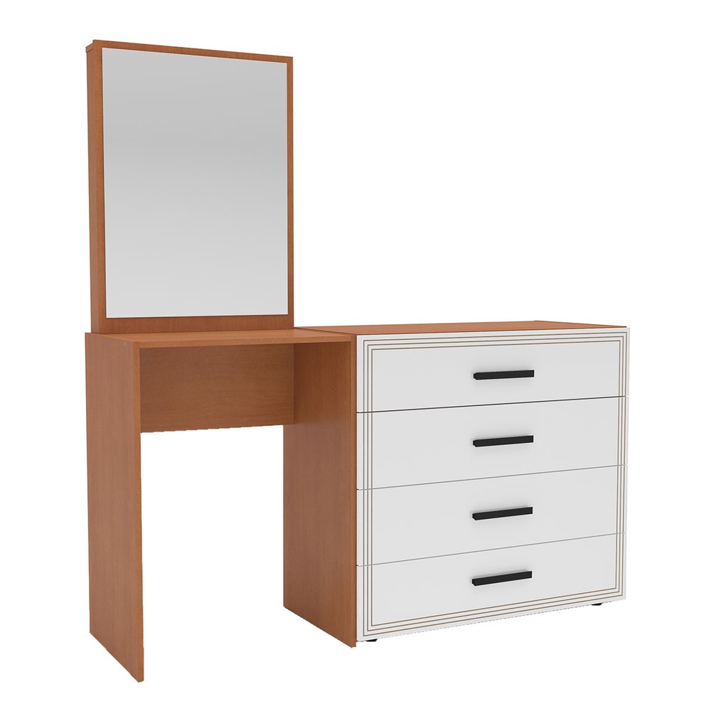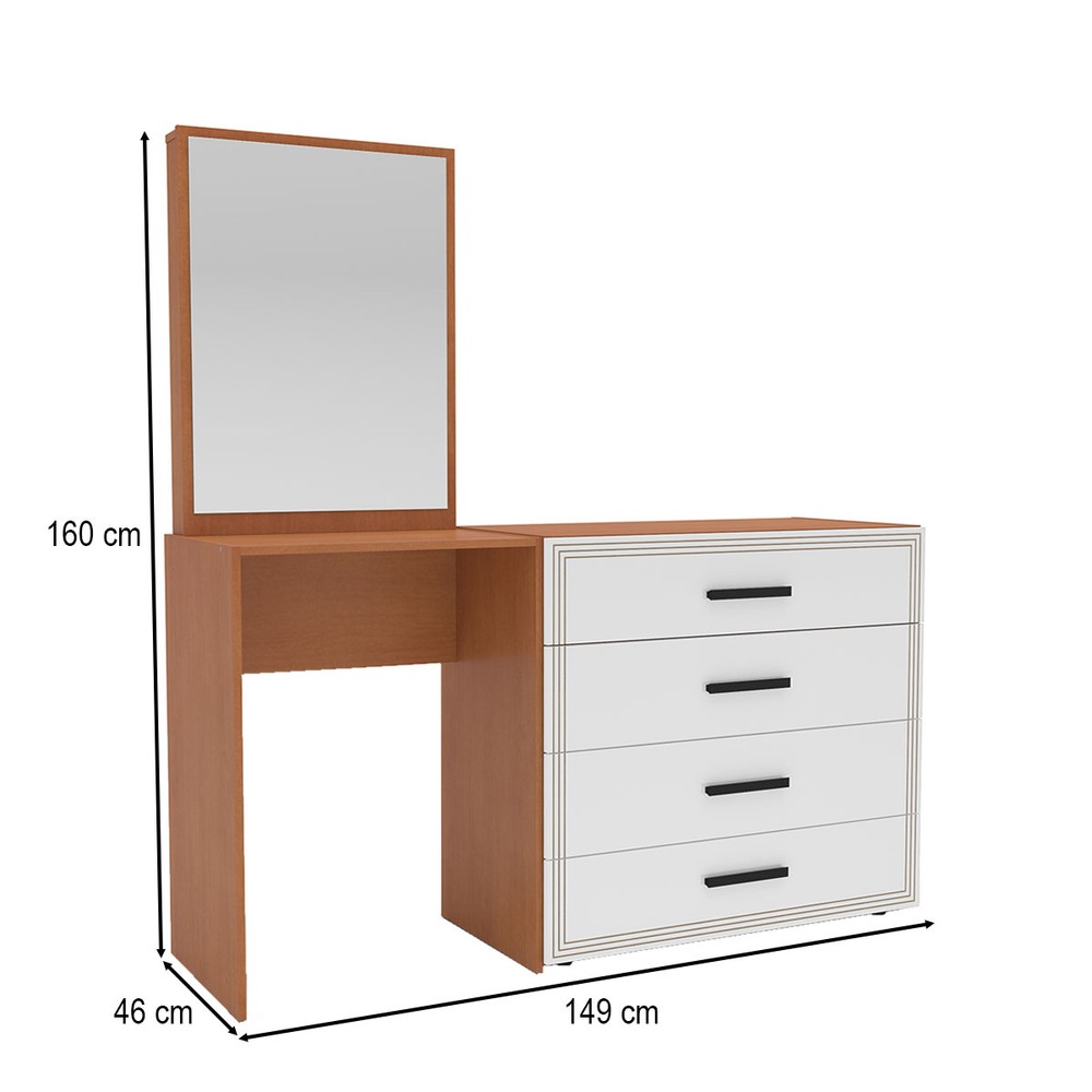 Cômoda Valência 4 Gavetas com Espelho Branco/Freijó - Politorno