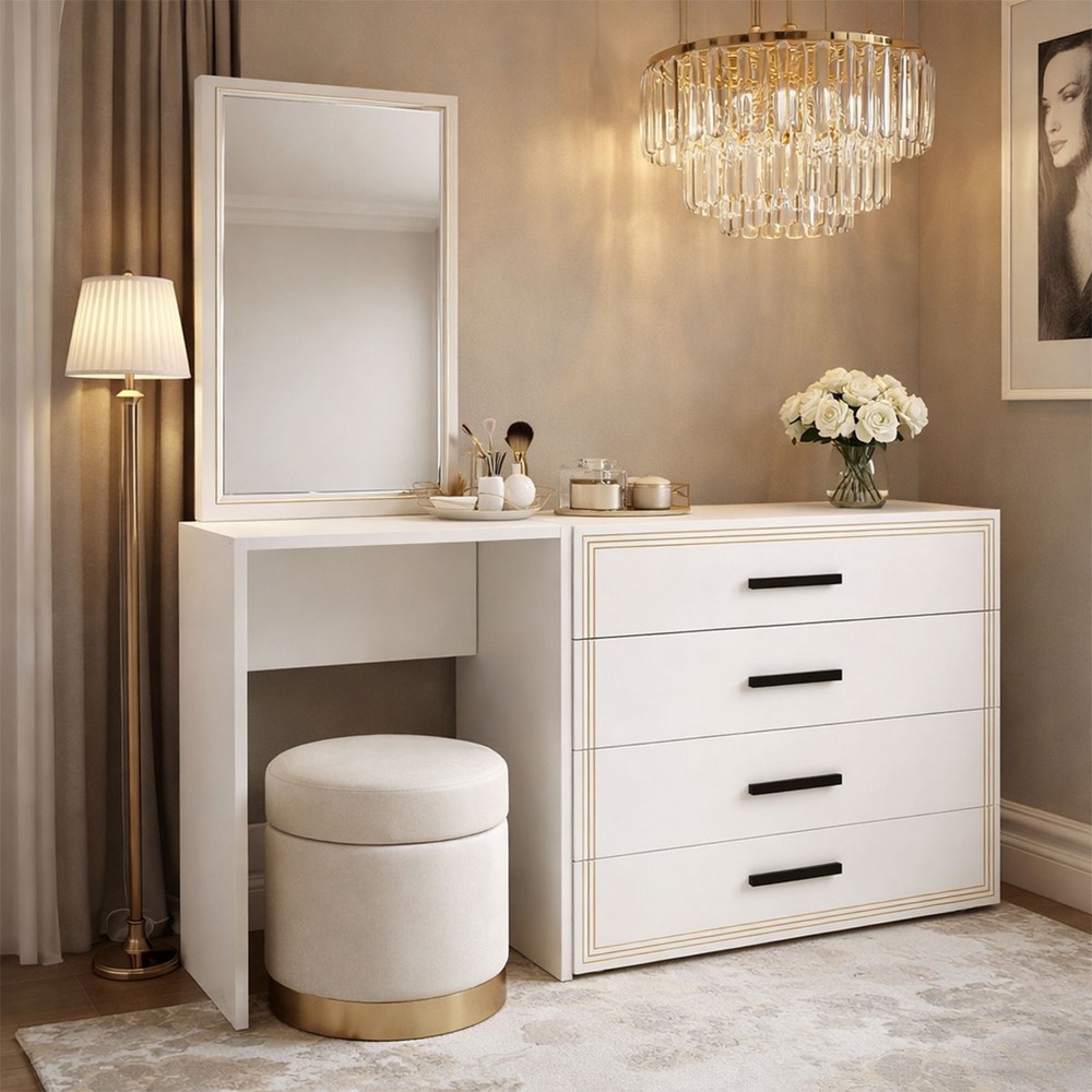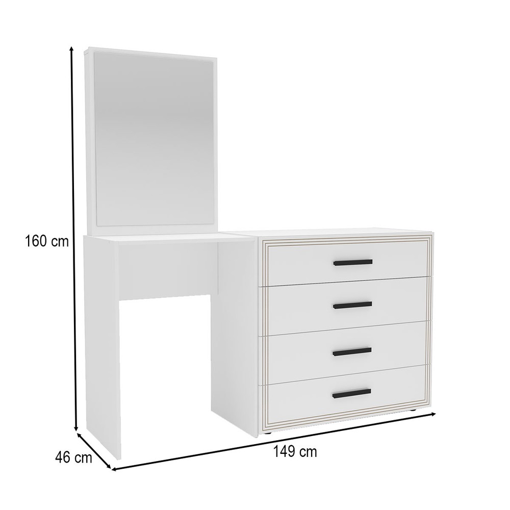 Cômoda Valência 4 Gavetas com Espelho Branco - Politorno
