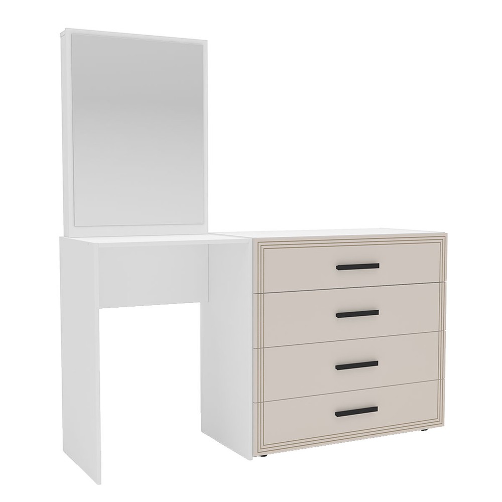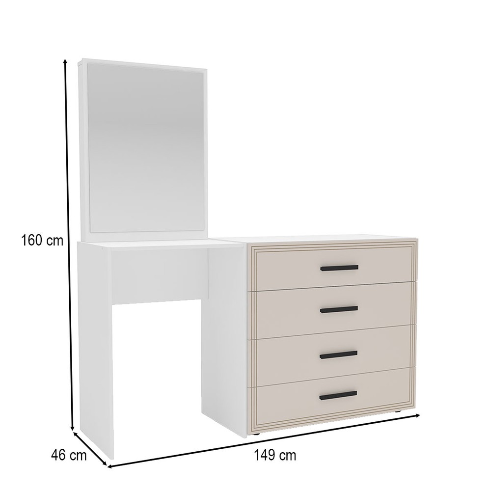 Cômoda Valência 4 Gavetas com Espelho Creme/Branco - Politorno