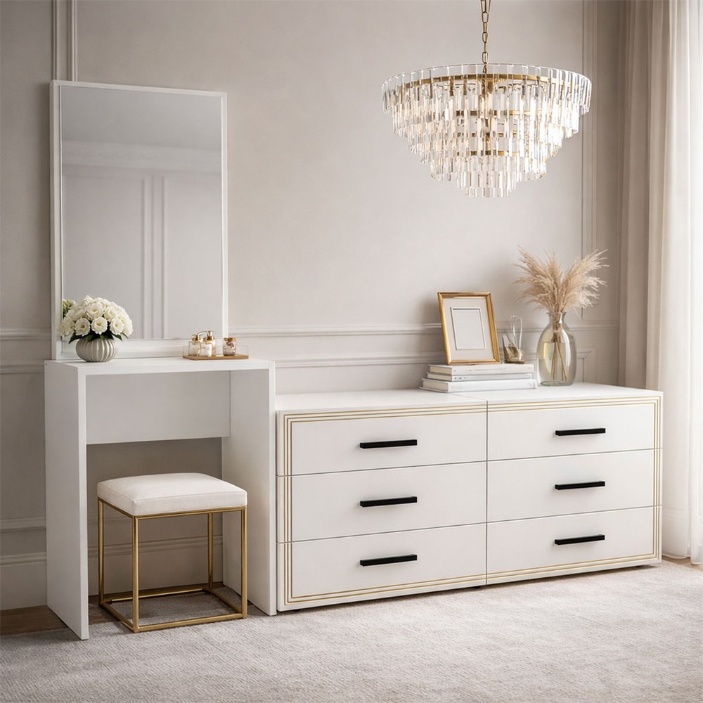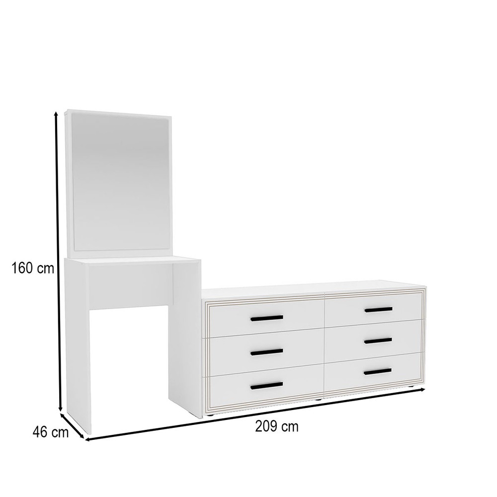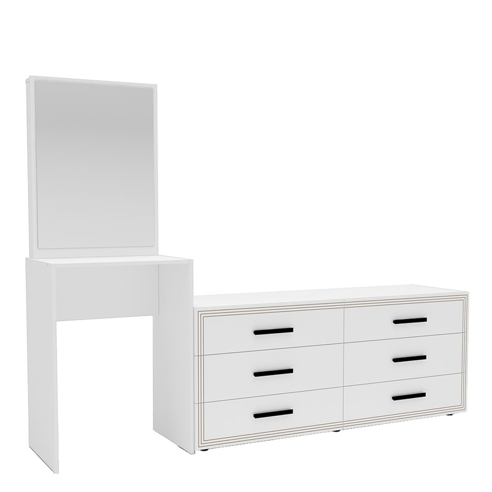 Cômoda Valência 6 Gavetas com Espelho Branco - Politorno
