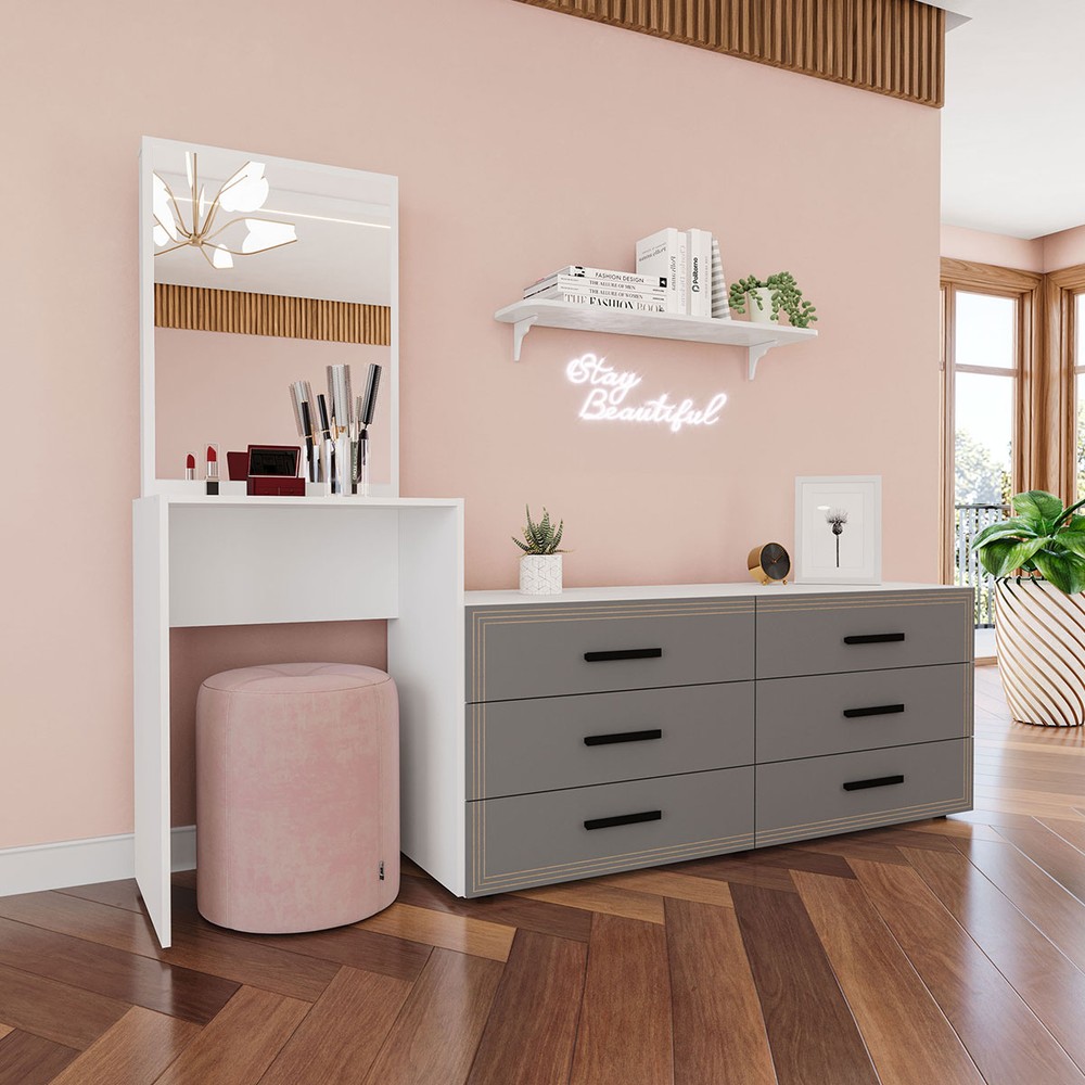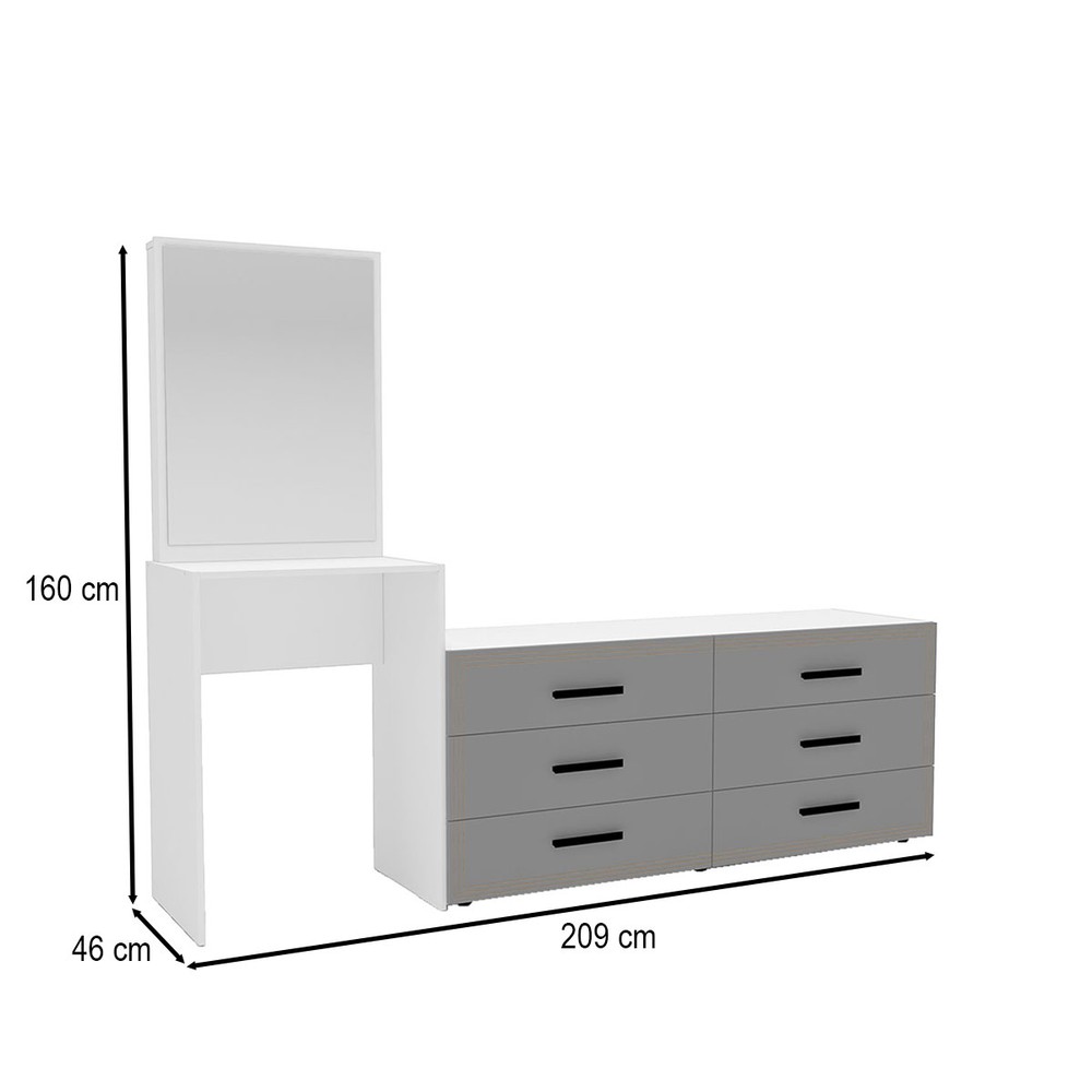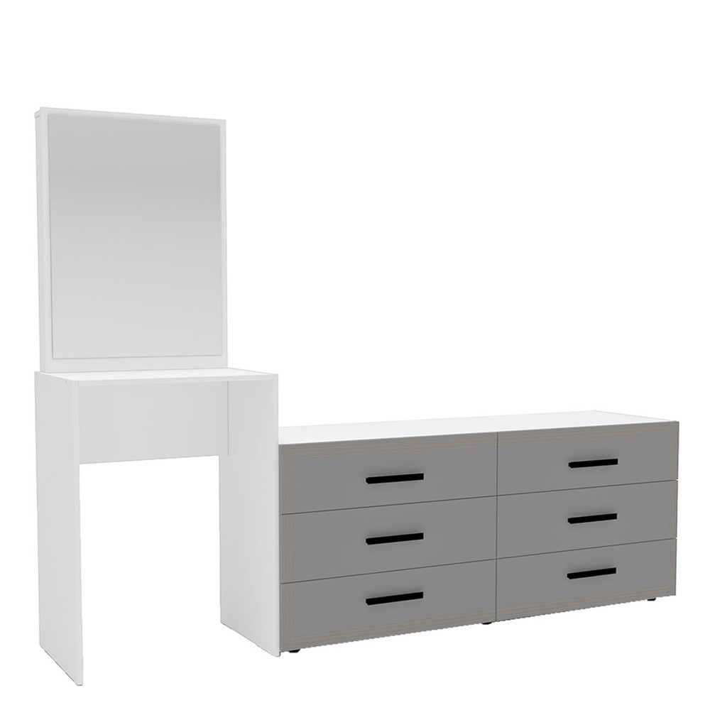 Cômoda Valência 6 Gavetas com Espelho Cinza/Branco - Politorno