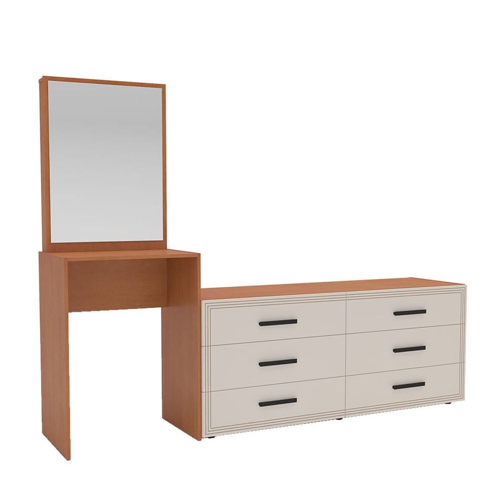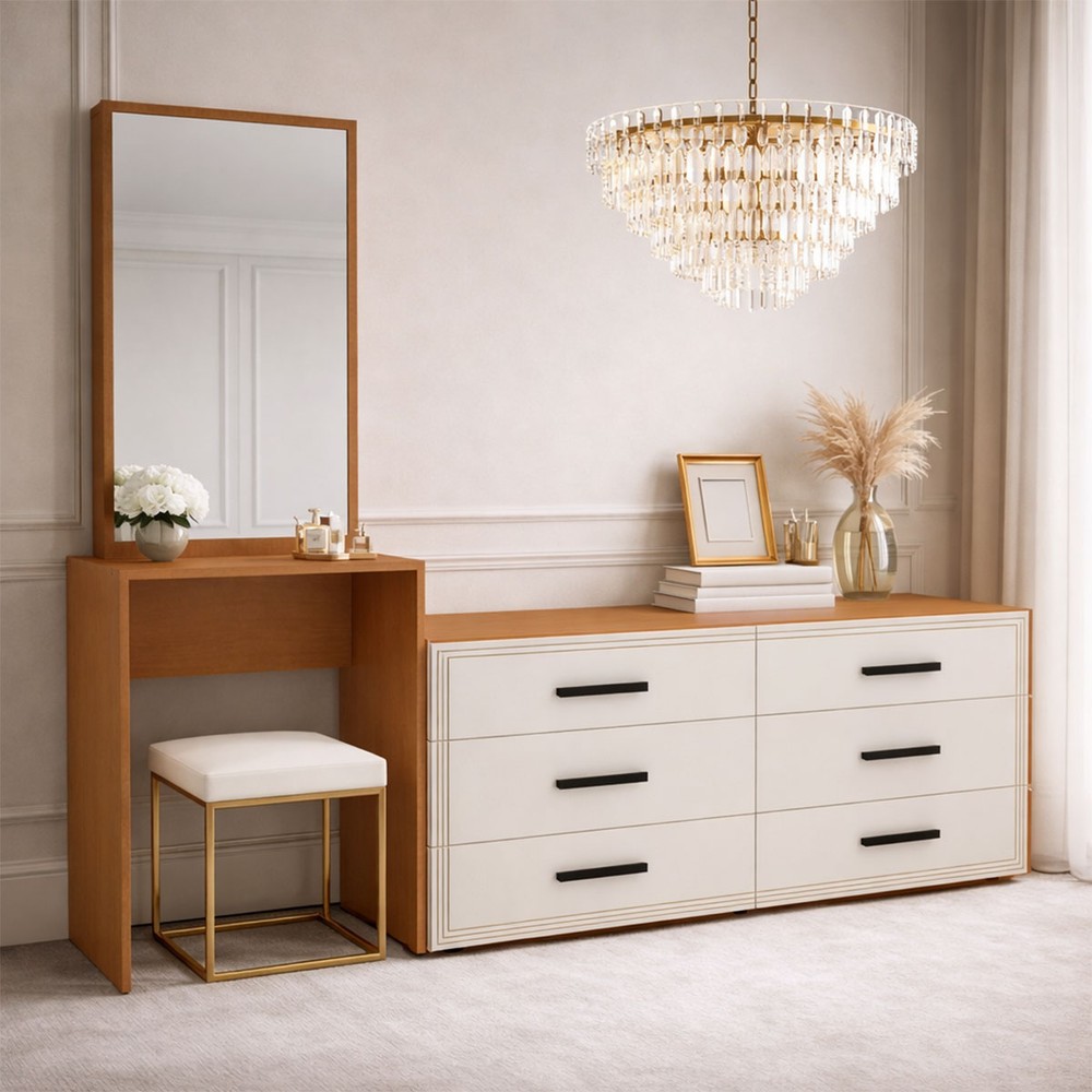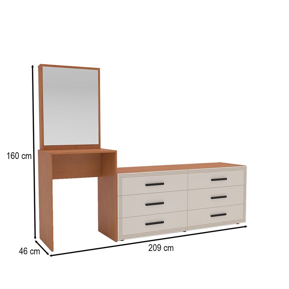 Cômoda Valência 6 Gavetas com Espelho Creme/Freijó - Politorno
