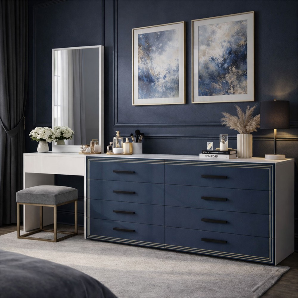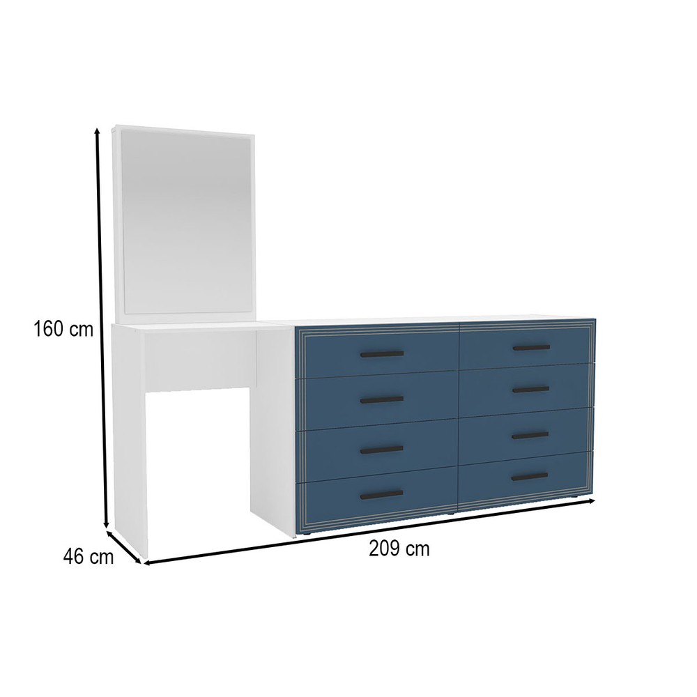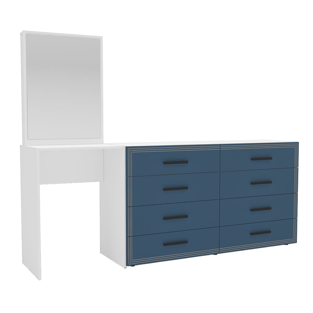 Cômoda Valência 8 Gavetas com Espelho Azul/Branco - Politorno