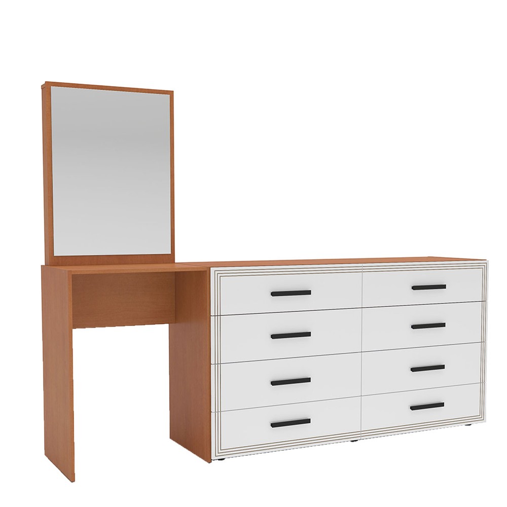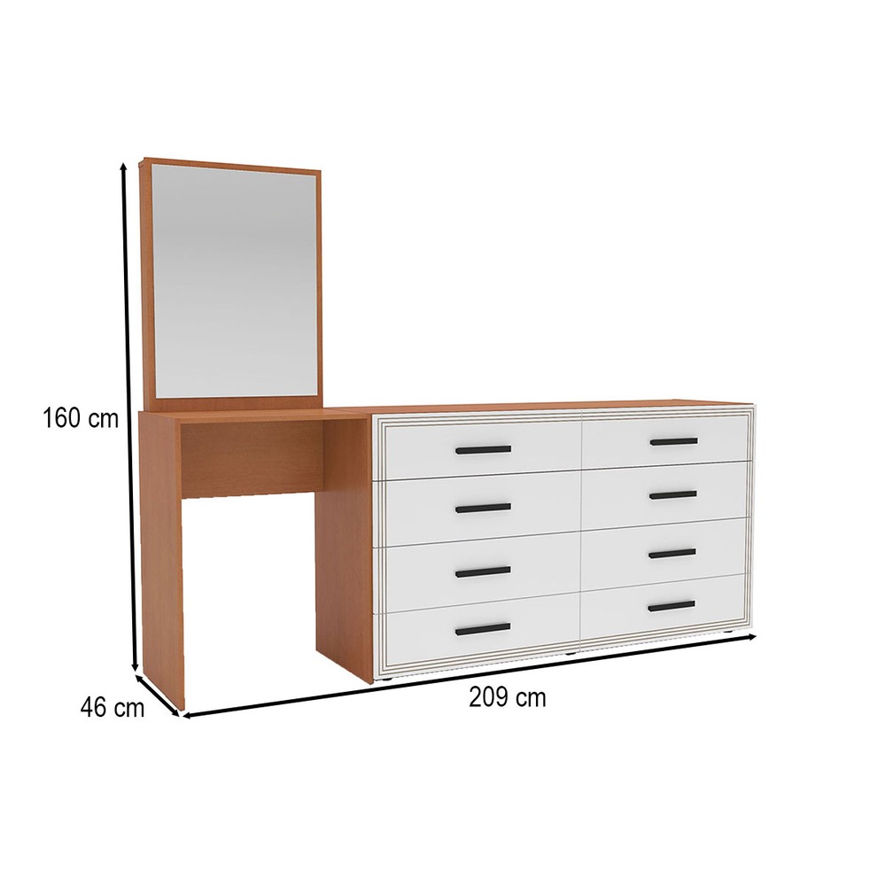 Cômoda Valência 8 Gavetas com Espelho Branco/Freijó - Politorno