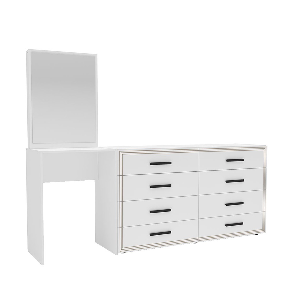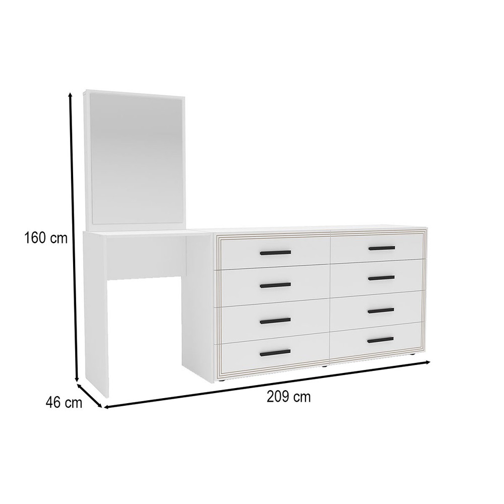 Cômoda Valência 8 Gavetas com Espelho Branco - Politorno