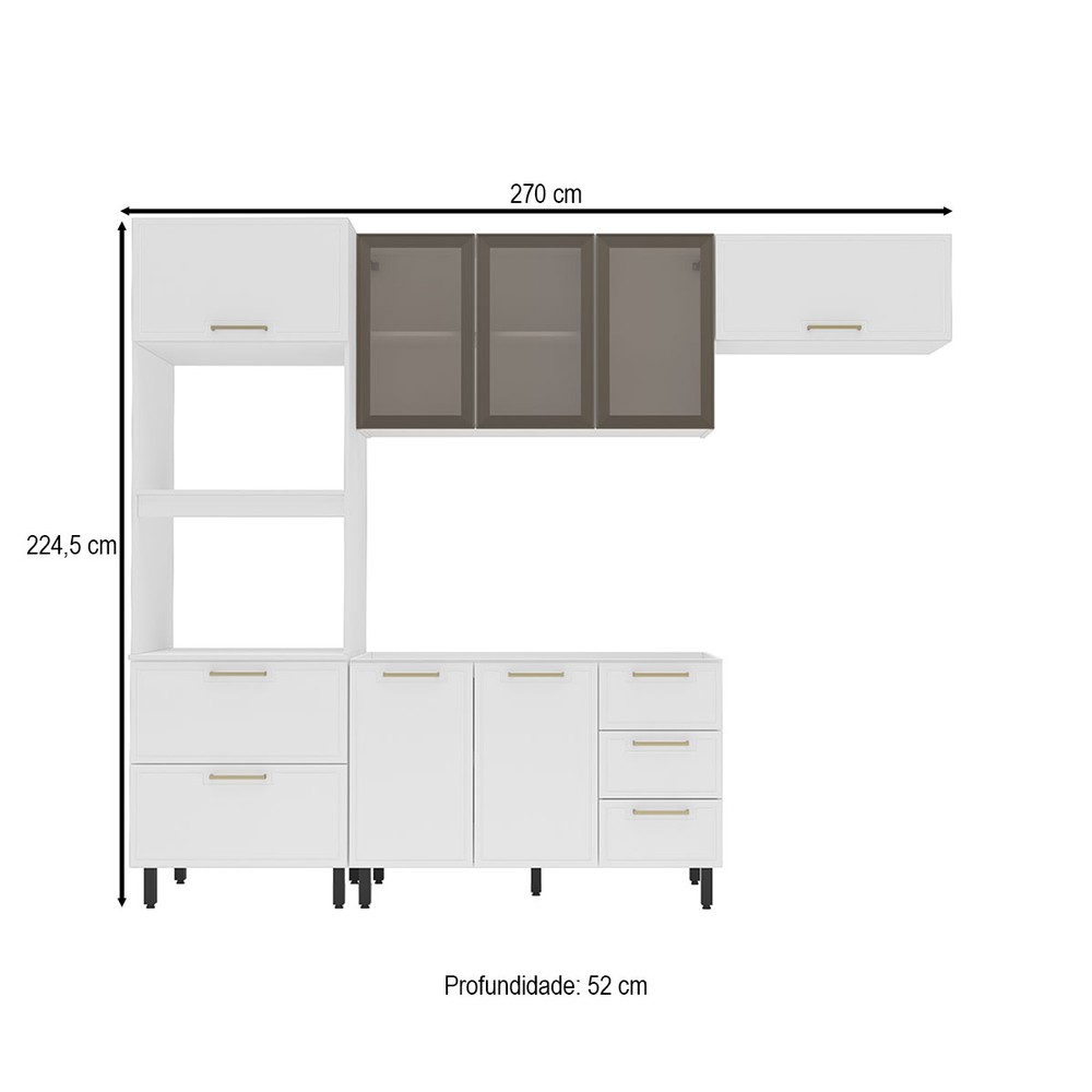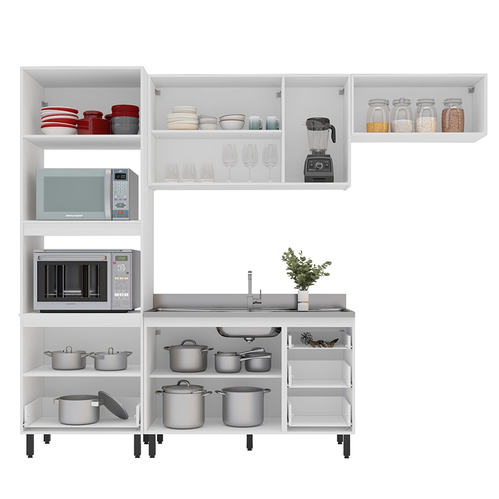 Cozinha Compacta Amara 8 Portas 4 Gavetas com Vidro 40250781 Branco - Politorno