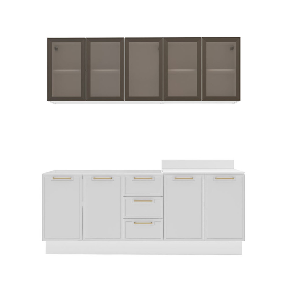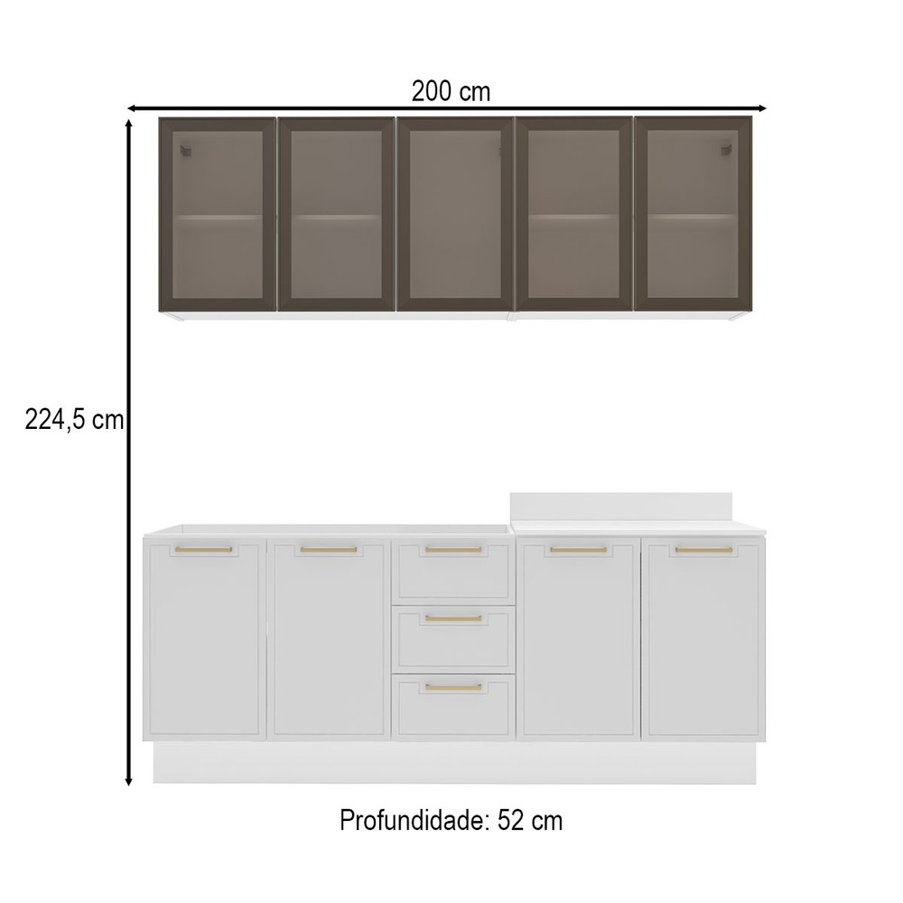 Cozinha Compacta Amara 9 Portas 3 Gavetas com Vidro 40250788 Branco - Politorno