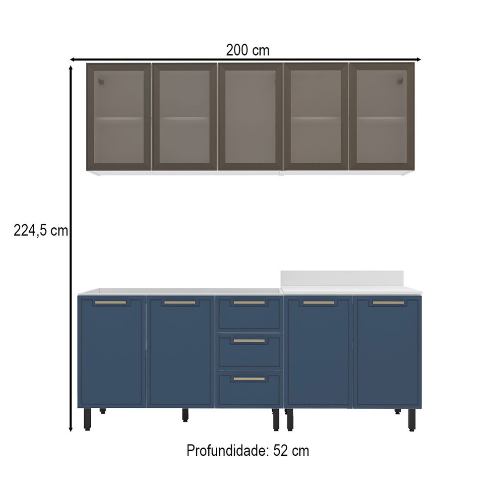 Cozinha Compacta Amara 9 Portas 3 Gavetas com Vidro 40250789 Azul/Branco - Politorno