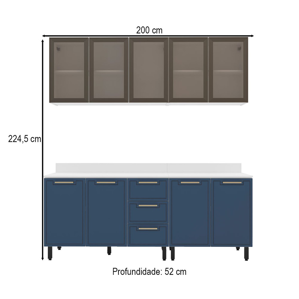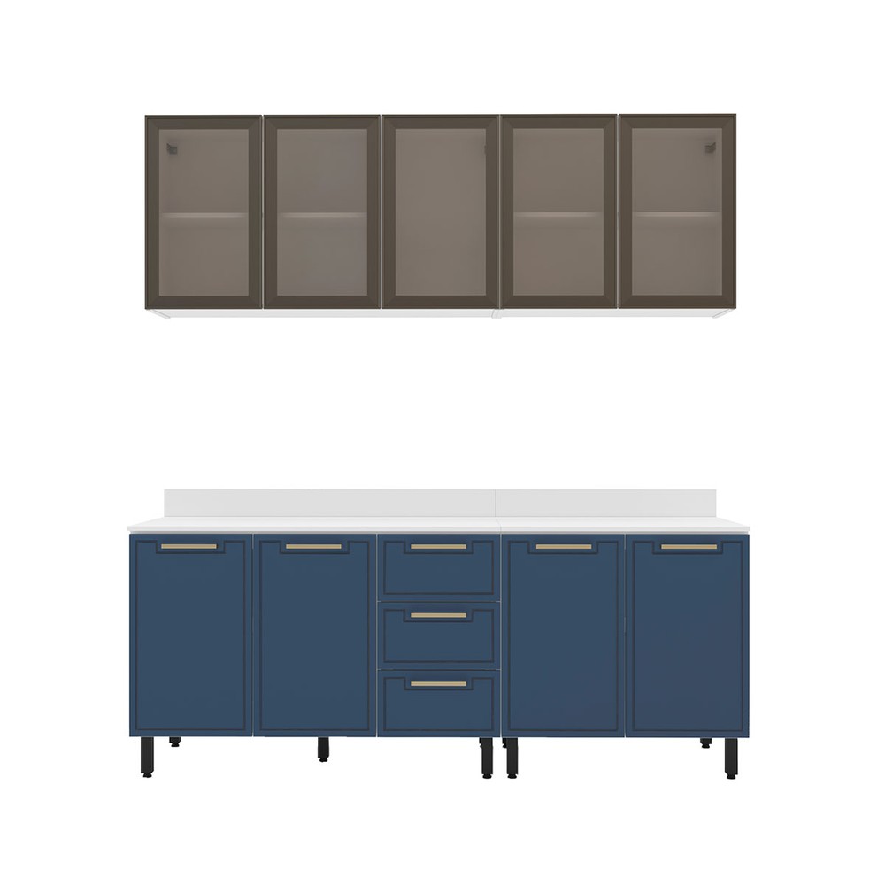Cozinha Compacta Amara 9 Portas 3 Gavetas com Vidro Azul/Branco - Politorno