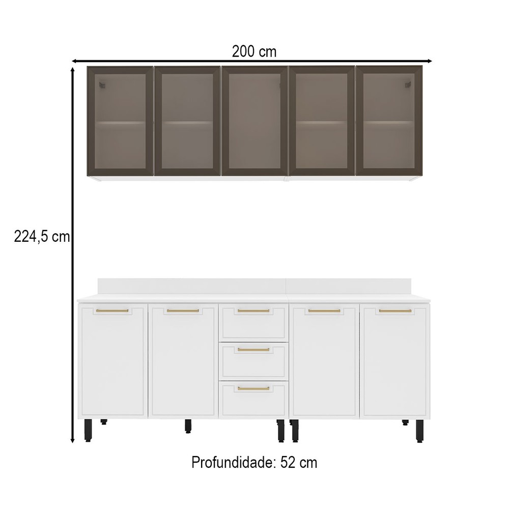Cozinha Compacta Amara 9 Portas 3 Gavetas com Vidro Branco - Politorno