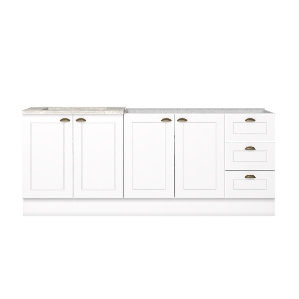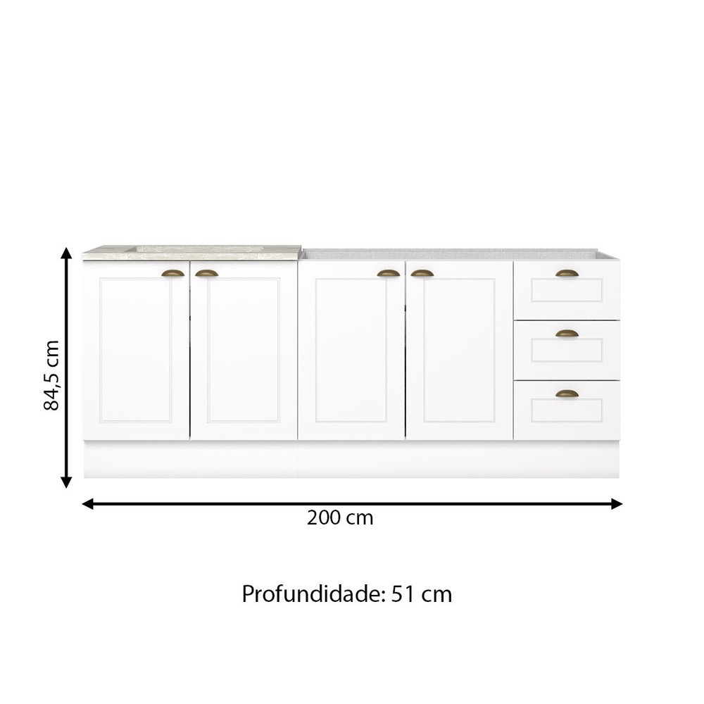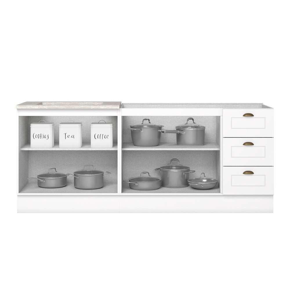 O(a) Cozinha Compacta Americana 4 Portas 3 Gavetas 100% Mdf Branco - Henn é produzido em 100% MDF na escala de brilho Fosco, e possui um grau de dificuldade de montagem: Médio.