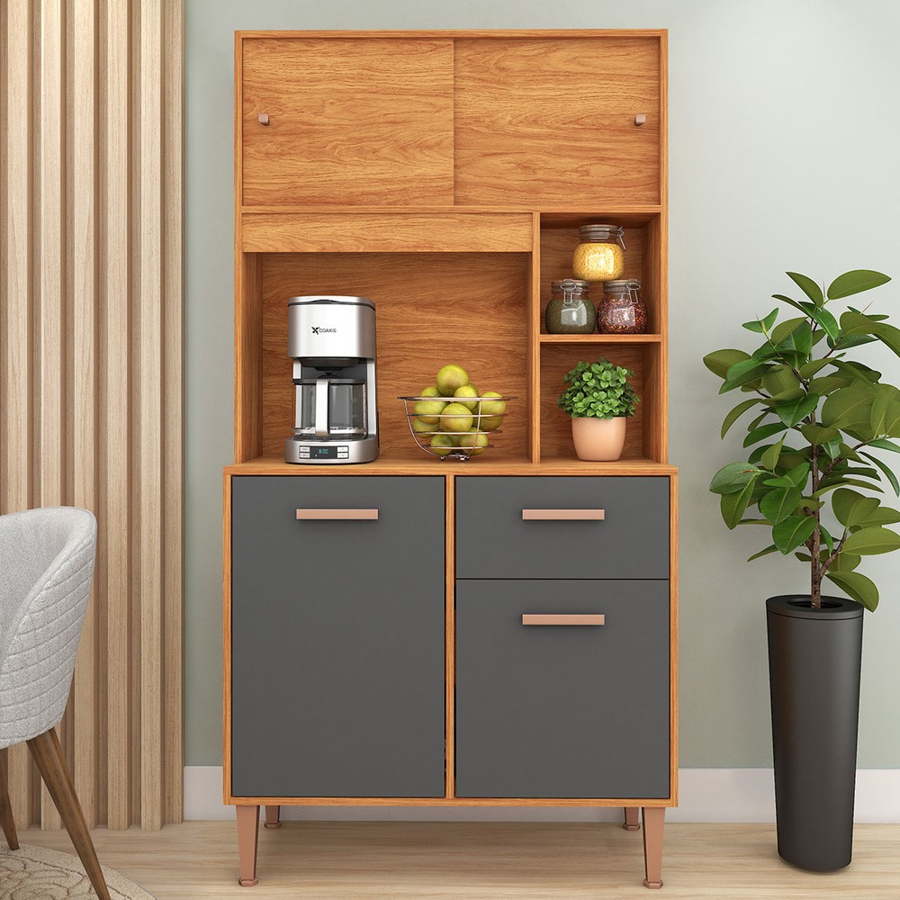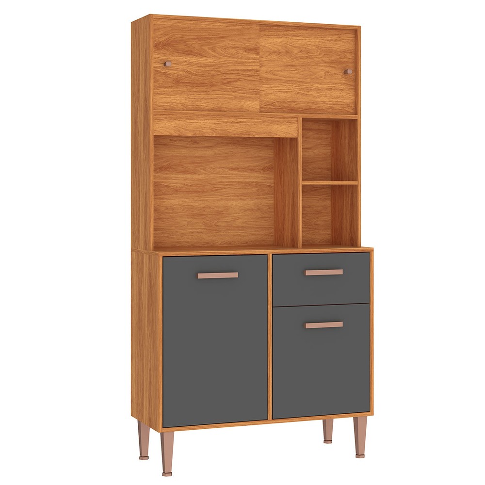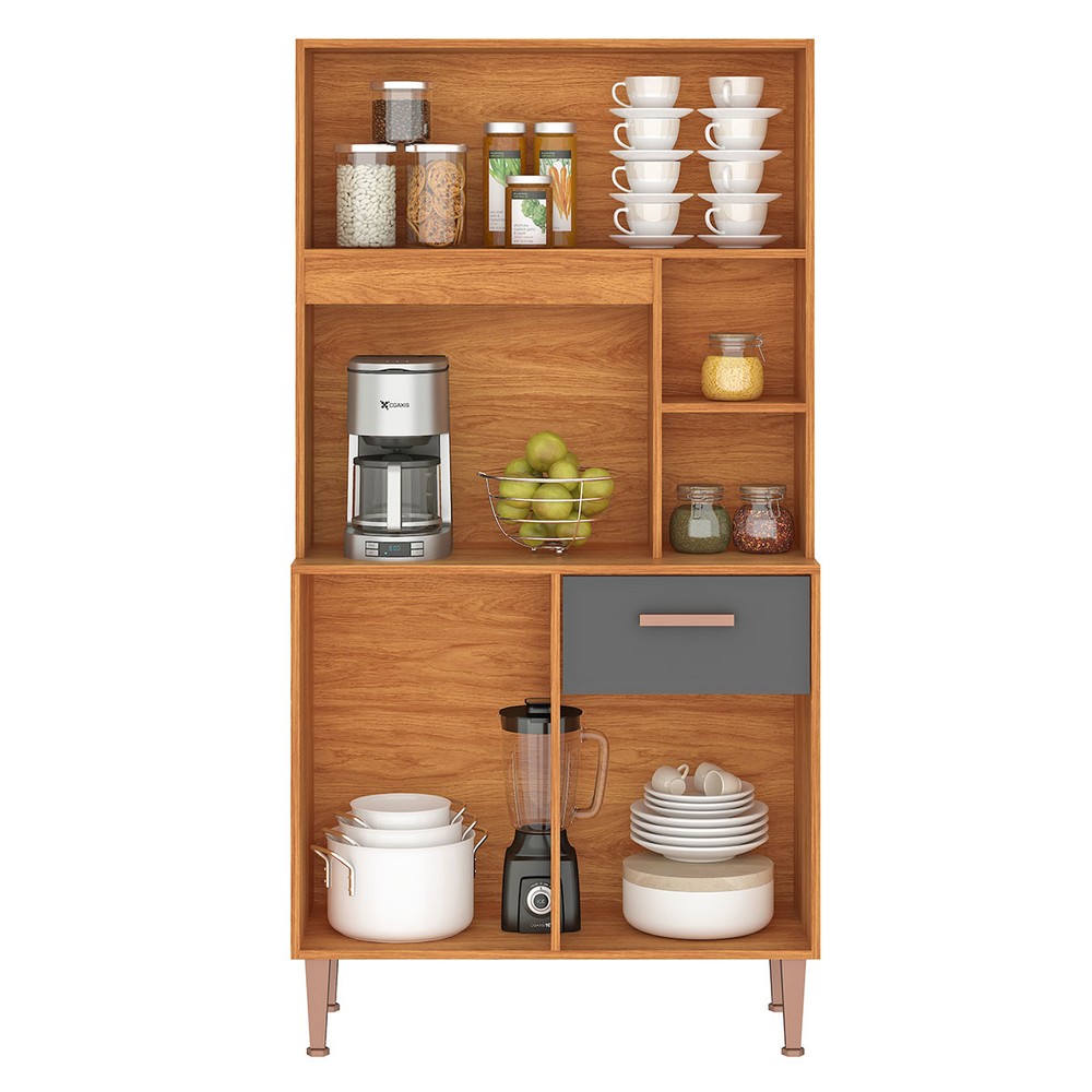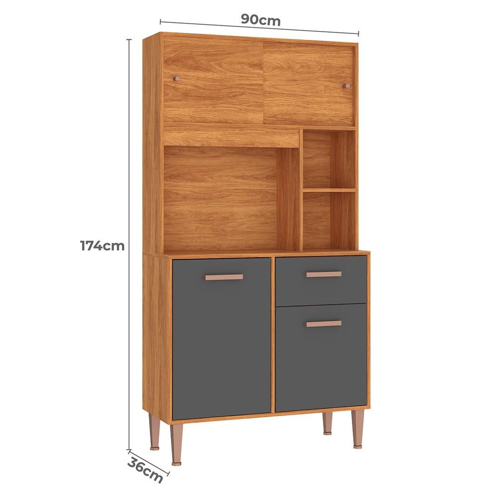 Cozinha Compacta Dália 4 Portas 1 Gaveta Cinamomo/Grafite - Fellicci