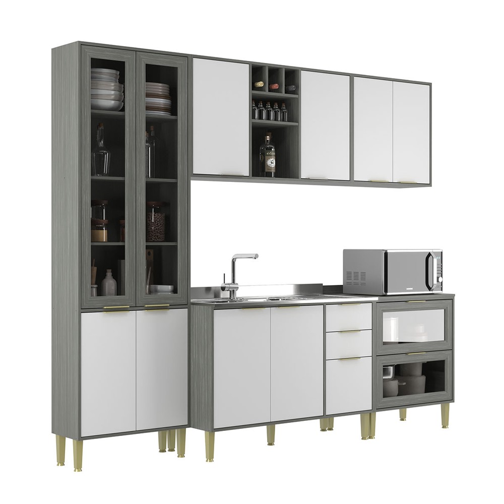 Cozinha Compacta Domus 10 Portas 5 Gavetas com Vidro Silver/Branco - Hecol Móveis