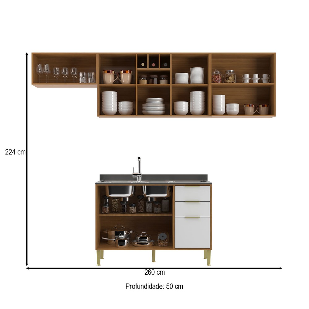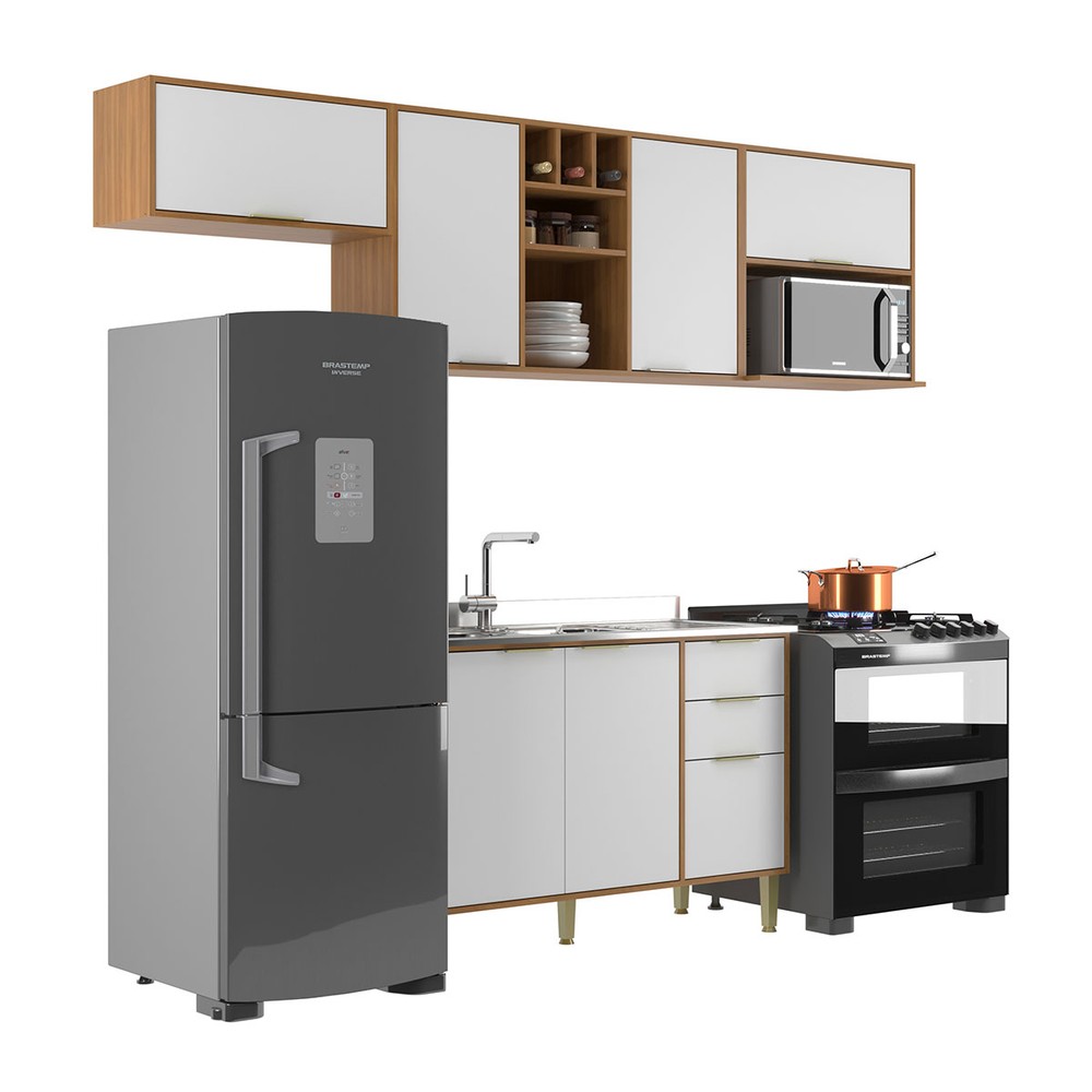 Cozinha Compacta Domus 6 Portas 3 Gavetas Nogal/Branco - Hecol Móveis