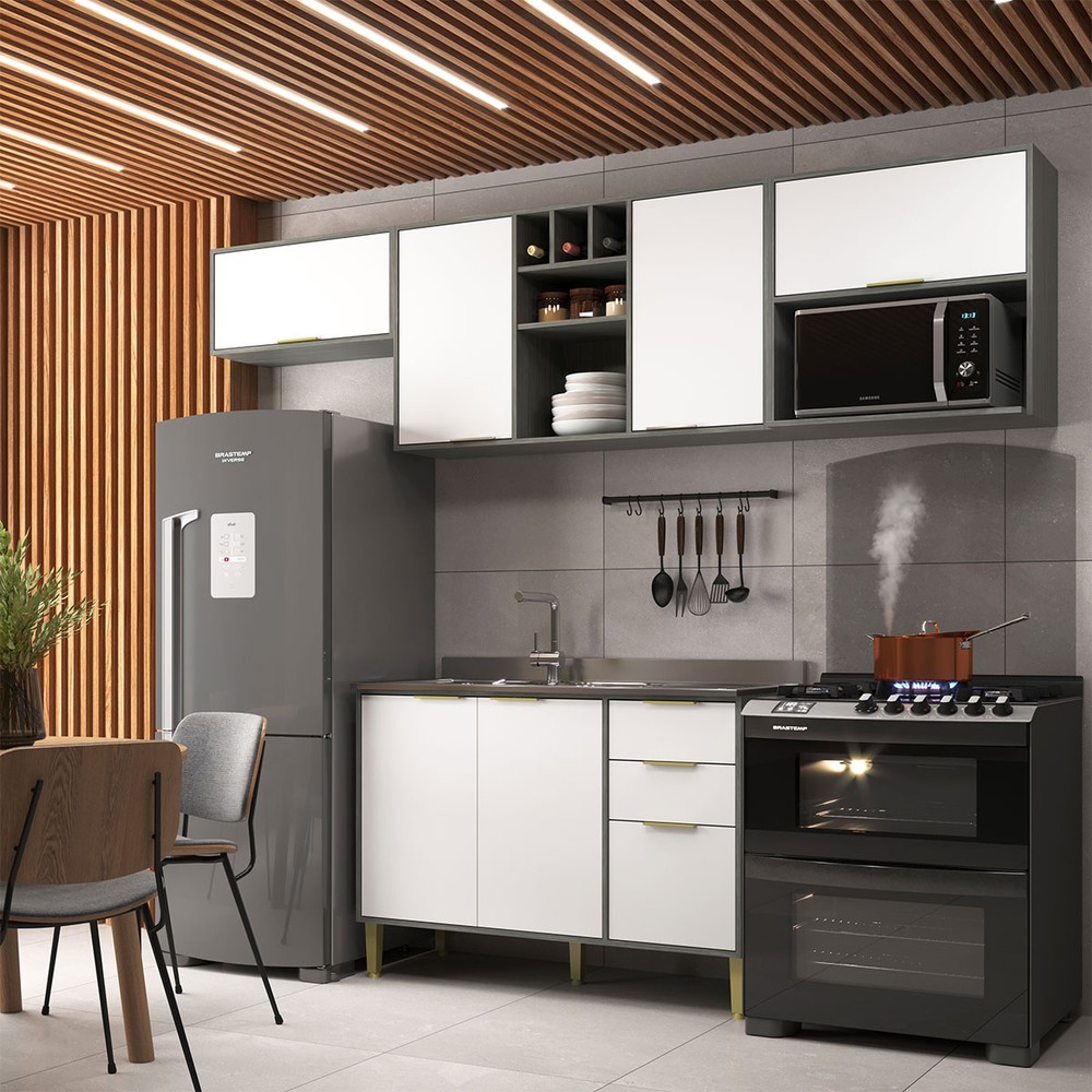 Cozinha Compacta Domus 6 Portas 3 Gavetas Silver/Branco - Hecol Móveis
