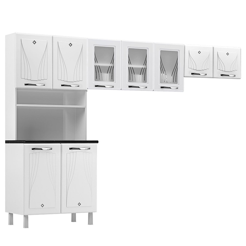Cozinha Compacta em Aço Star New 9 Portas com Vidro Branco - Telasul