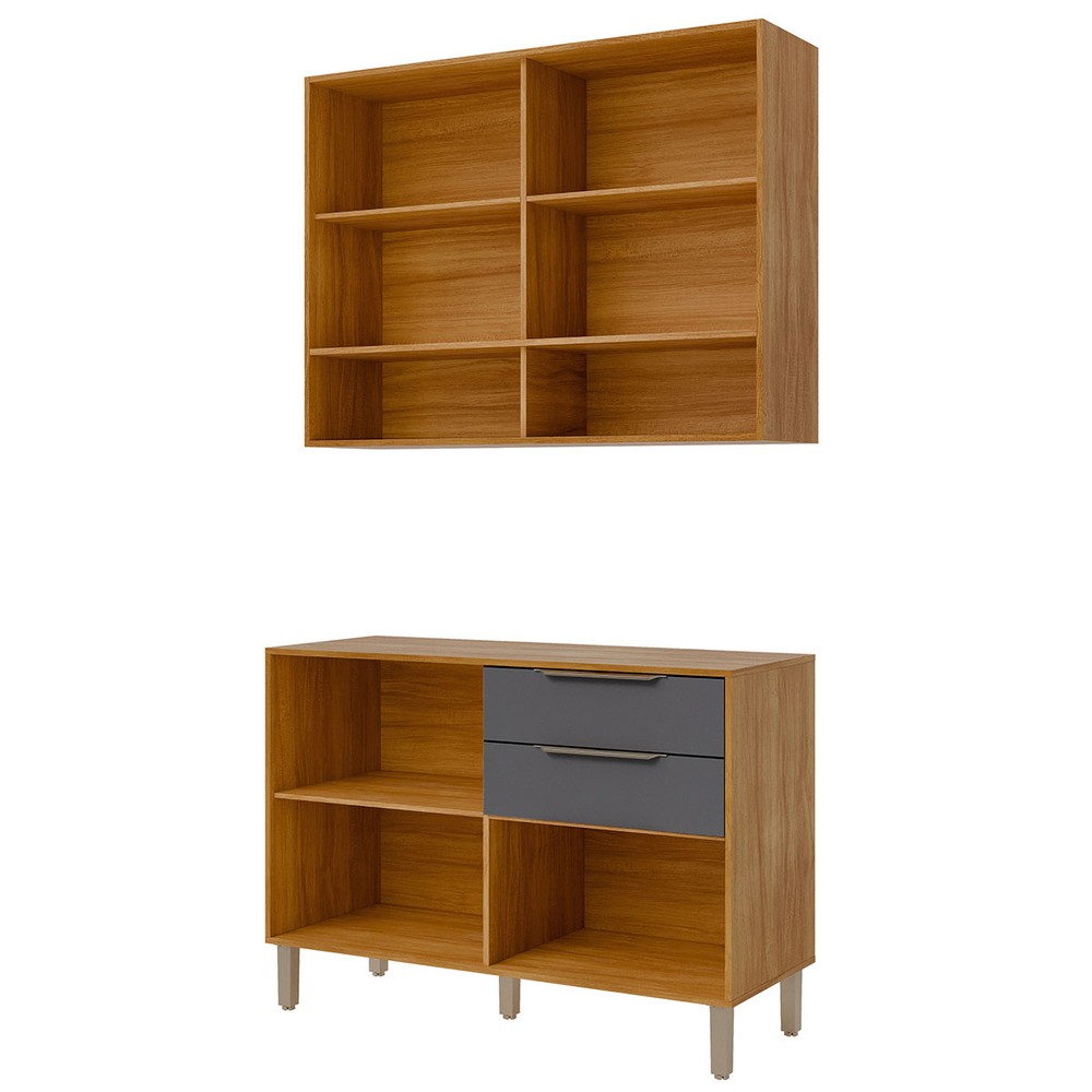 Cozinha Compacta Helena 4 Portas 2 Gavetas Ripado Cinamomo/Titanium - Pnr Móveis